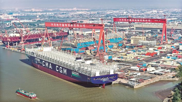 “技术创新是泰州船企保持领先的‘核心密码’。”三福船舶总工程师胡杰说,泰州船企坚持“科技引领、创新驱动”,强化产学研深度合作,加快高端人才引进,持续提升自主创新能力。扬子江船业、新时代造船等重点船舶企业在上海建立船舶设计研究院,独立自主开发设计集装箱船、散货船和油轮等主流船型。近年来,2.4万标箱超大型集装箱船、新一代40万载重吨超大型矿砂船、32万载重吨超大型油轮、17.5万立方米LNG运输船等一批大型高科技船舶在泰州市建成交付。江苏蓝魂新能源科技有限公司自主研发的铝合金B型LNG液舱制造技术,打破了国外船企的长期垄断;振华海科研发的“智能高效低噪船用消防防爆关键系统”打破了国外垄断;三福船舶的超灵便大湖型1.1万载重吨多用途重吊船等21个产品获省首台(套)重大装备认定。近年来,随着全球航运温室气体减排战略持续推进,航运绿色转型成为大势所趋。泰州船企践行“绿色造船、造绿色船”发展理念,持续在绿色能源船舶建造和绿色造船两端发力。