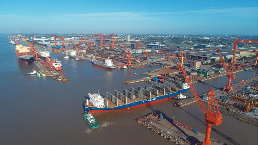 围绕“构成要素齐全,产业规模领先,产业链条完整,产业分布集中”的船舶产业集群目标,泰州市通过强链补链延链,形成了龙头引领、配套完善、竞争力强的比较优势,集群发展优势日趋明显。2022年,通泰扬海工装备和高技术船舶集群入选国家级先进制造业集群。省社会科学院泰州分院经济所所长朱菊萍说,经过多年不懈努力,泰州已集聚船舶修造(拆)企业20多家、配套企业400余家,初步构建起“制造+配套+服务”全产业链深度协同的产业发展新格局,形成了独特的模式,进一步筑牢了产业核心竞争力“护城河”。从龙头企业来看,江苏新时代造船有限公司作为全球最具规模化、专业化、现代化和影响力的总装造船企业之一,连续多年位居中国造船前五、全球前十。江苏扬子江船业集团是中国首家在新加坡上市的造船企业,集团公司造船产量自2009年起连续位居中国造船行业前5强,2021年入围全球造船十强企业。泰州三福船舶工程有限公司核心产品万载重吨级多用途重吊船占全球市场三分之一份额。在船型布局上,泰州市实现了从常规散货船、油船、装箱船、化学品船到LNG运输船的“全覆盖”发展,呈现“家家有绝活、个个有特色”的差异化发展局面。