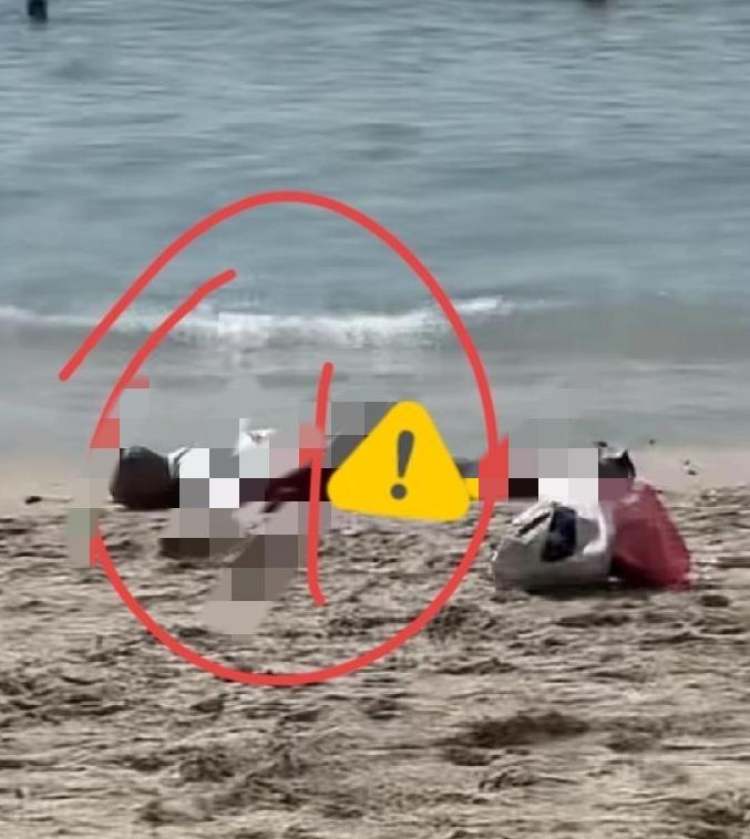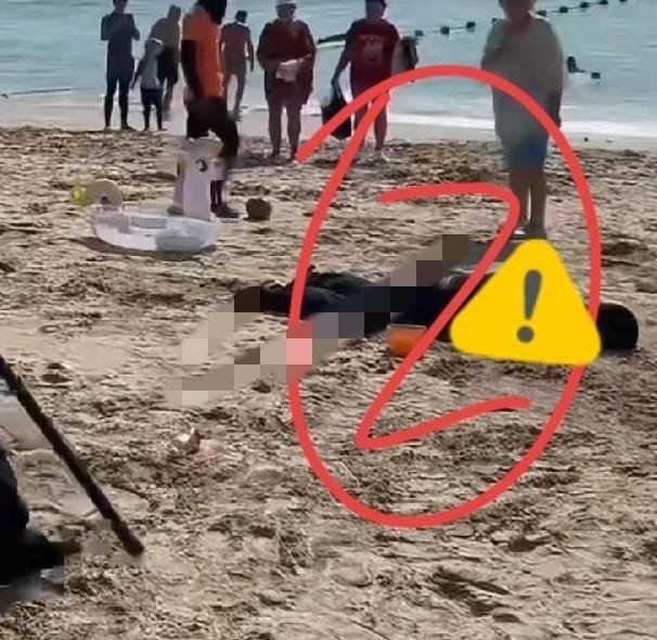 第3个人,中间,海边几米,任某转身走了,最后还在伸胳膊挣扎求救,第2个人,左边,穿一身黑色衣服,衬衫、长裤,不像来游泳的,第1个人,右边,海水边上,最先曝光的一个,白色T恤衫,灰色长裤,也不像来游泳的,一起光头,头皮非常黑,可见三人虽然相距不远,却在三个位置,没打过一个中老年人!肯定吓怂了!再次警示世人!出门在外,退一步海阔天空!