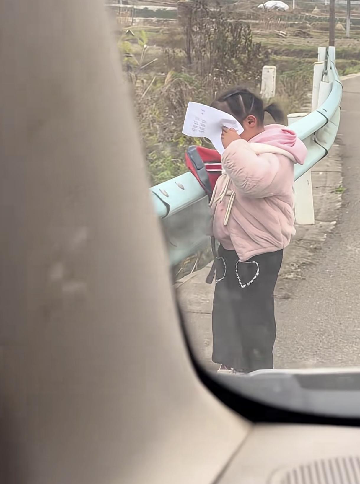 老师返校的路上, 偶遇自己的学生, 女孩假装看不见,用纸挡着眼睛走, 网友:我的学生在学校外见到我,赶紧躲到树后,我跟过去一看,发现他妈也躲在那里[捂脸]