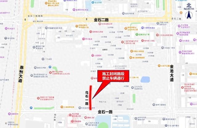 12月5日,记者从市公安局交管支队获悉,12月6日起至施工结束(共约60天),惠城区乌石一路(腾盛大厦西侧路段,共约156米)临时封闭,禁止车辆通行。车辆请通过周边金石一路、金石二路、惠州大道、金龙大道等道路绕行。