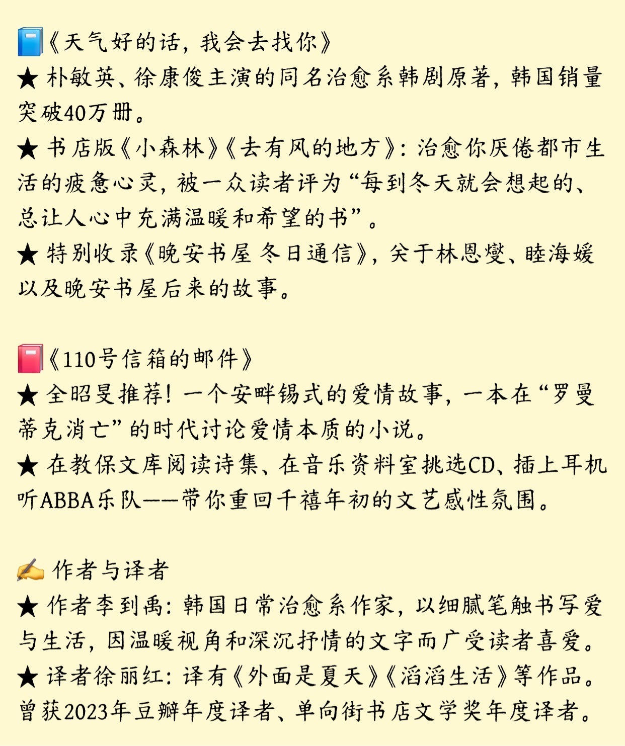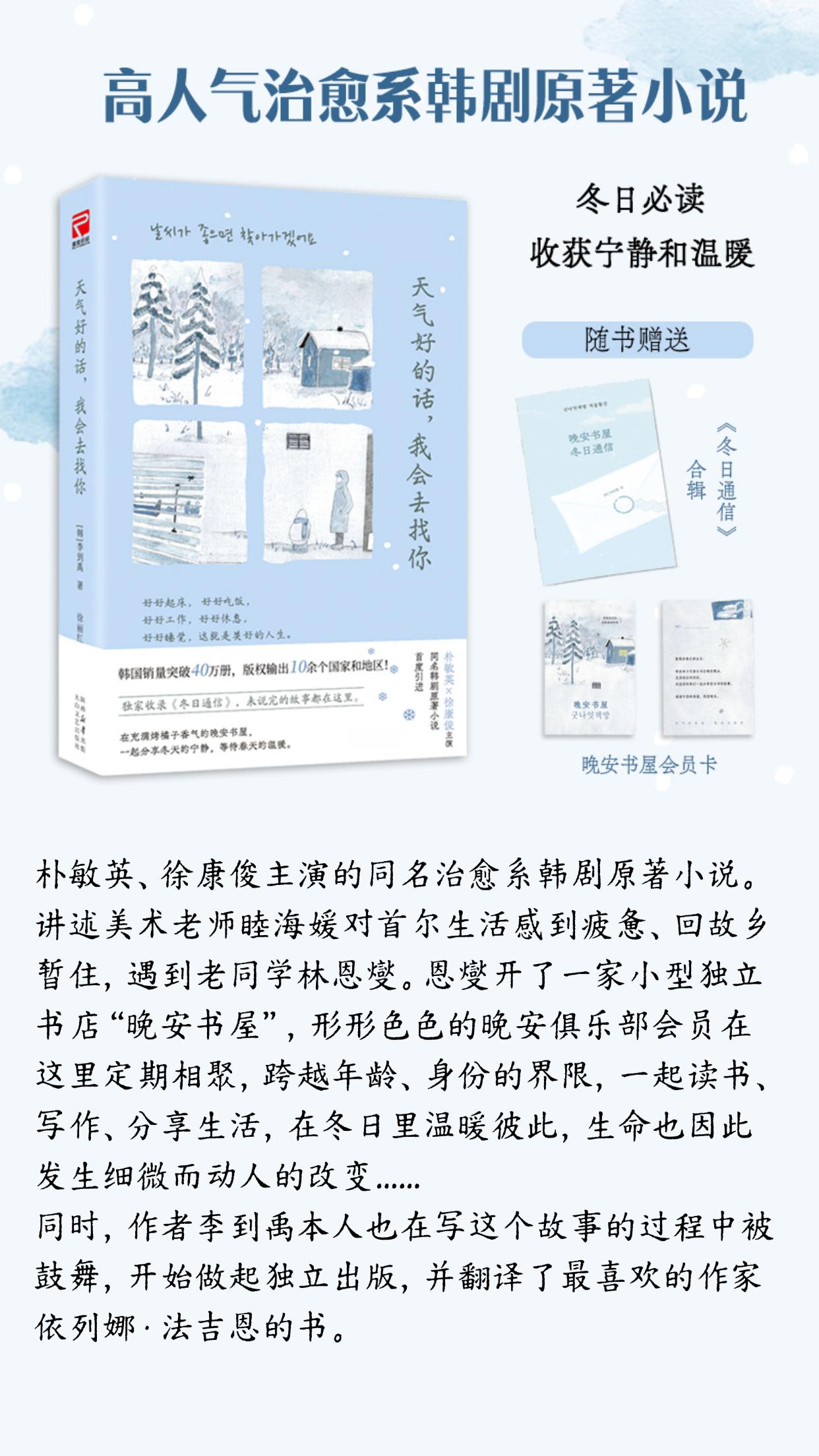 一到这季节就想点开《天气好的话,我会去找你》,从转发中选三个小伙伴送中文版原著吧。同作者的《110号信箱的邮件》徐康俊之前也推荐过,也送三本~ 抽奖详情