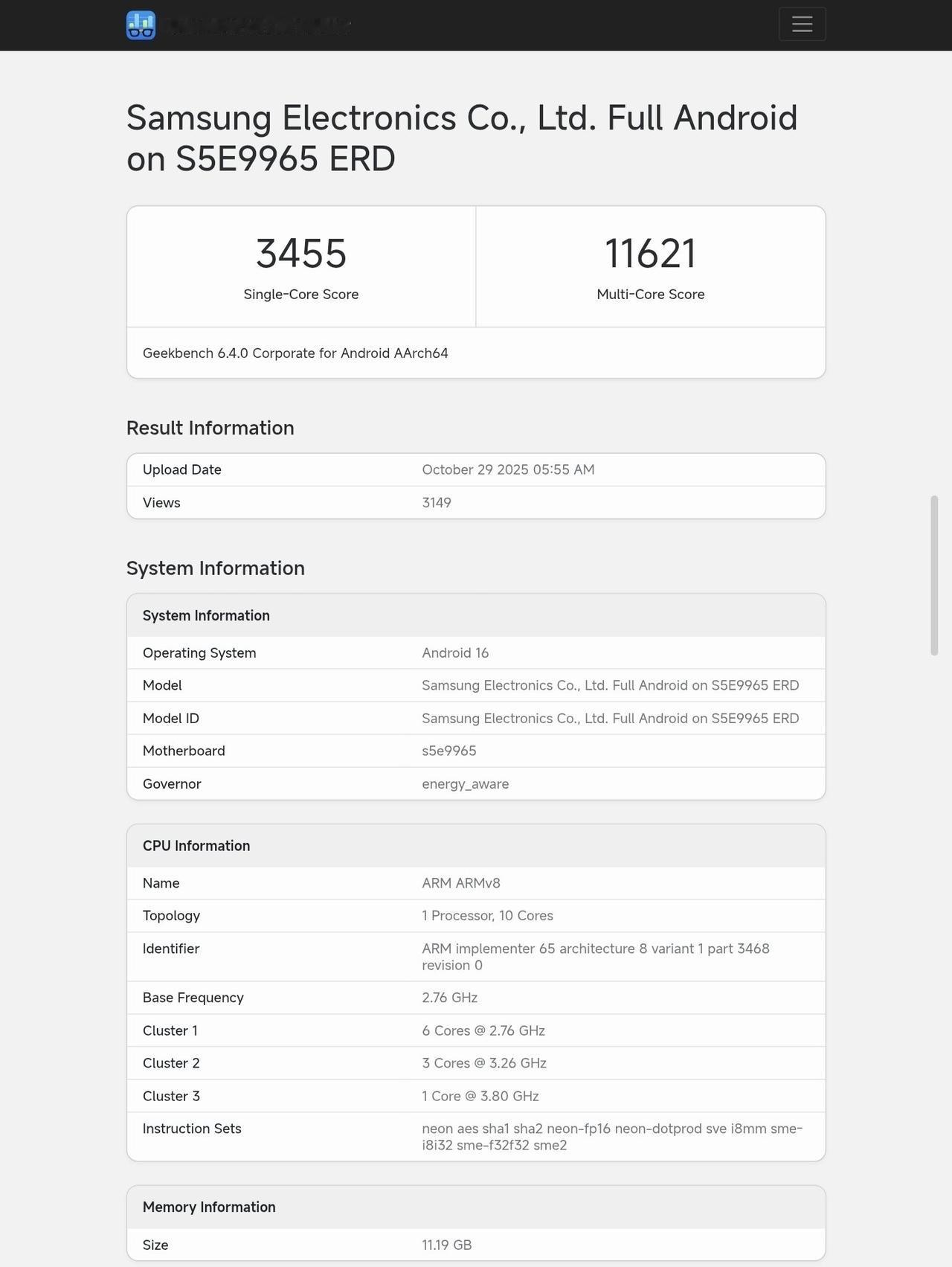 三星Galaxy S26系列预计在明年2月推出,近期消息称这次的超大杯S26 Ultrr会有紫色。 S26系列韩国版据传会使用三星猎户座Exynos 2600芯片,这是全球首款商用的2nm移动SoC。其他国家和地区销售的三星S26系列则会采用第五代骁龙8至尊版for Galaxy。 从目前曝光的GB6跑分来看,三星Exynos 2600多核跑分比第五代骁龙8至尊版略高一些,其CPU为十核设计。