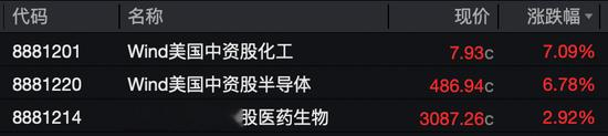 中概股涨跌不一,纳斯达克中国金龙指数涨幅为0.4%。中资股中,化工、半导体、医药生物板块领涨。