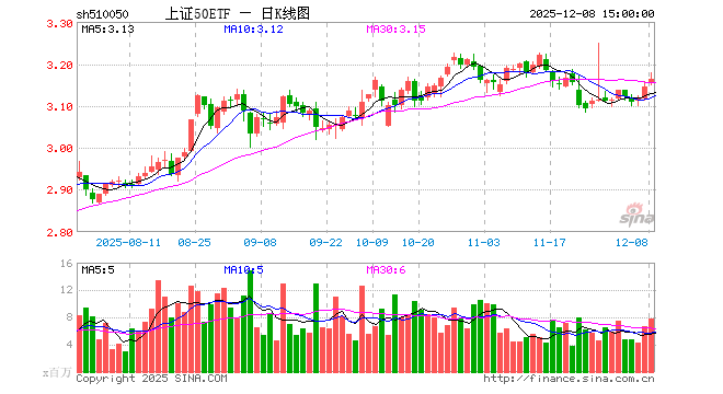 12月8日,上证50ETF(510050)涨0.60%,成交额25.00亿元。当日份额增加1440.00万份,最新份额为575.48亿份,近20个交易日份额增加1.67亿份。最新资产净值计算值为1822.19亿元。