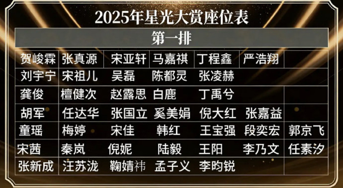 🍉网传的2025星光大赏座位图第一排。你们觉得看点是什么?
