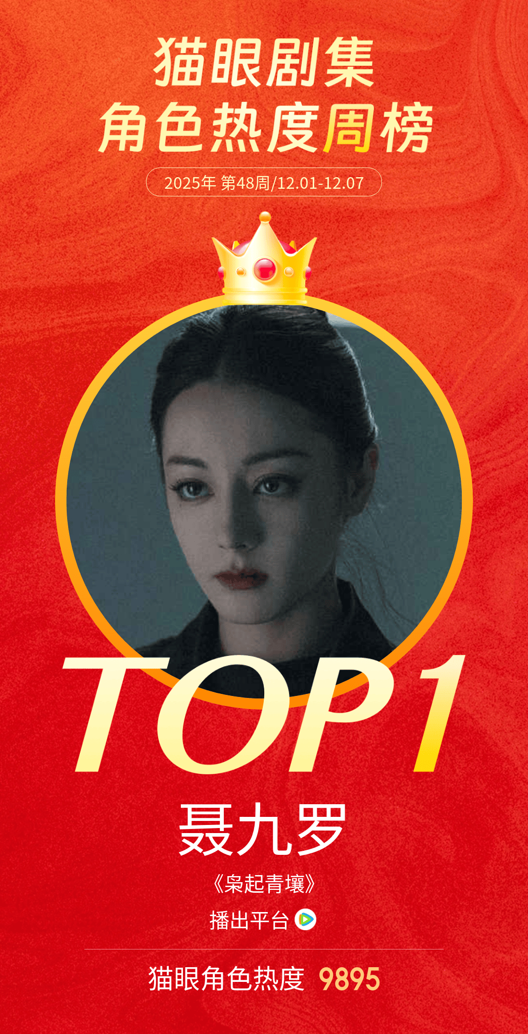 迪丽热巴迪丽热巴聂九罗角色热度持续霸榜 据猫眼专业版数据,在《枭起青壤》中饰演的“聂九罗”已连续三周成为猫眼角色热度榜冠军!2025第48周猫眼角色热度榜