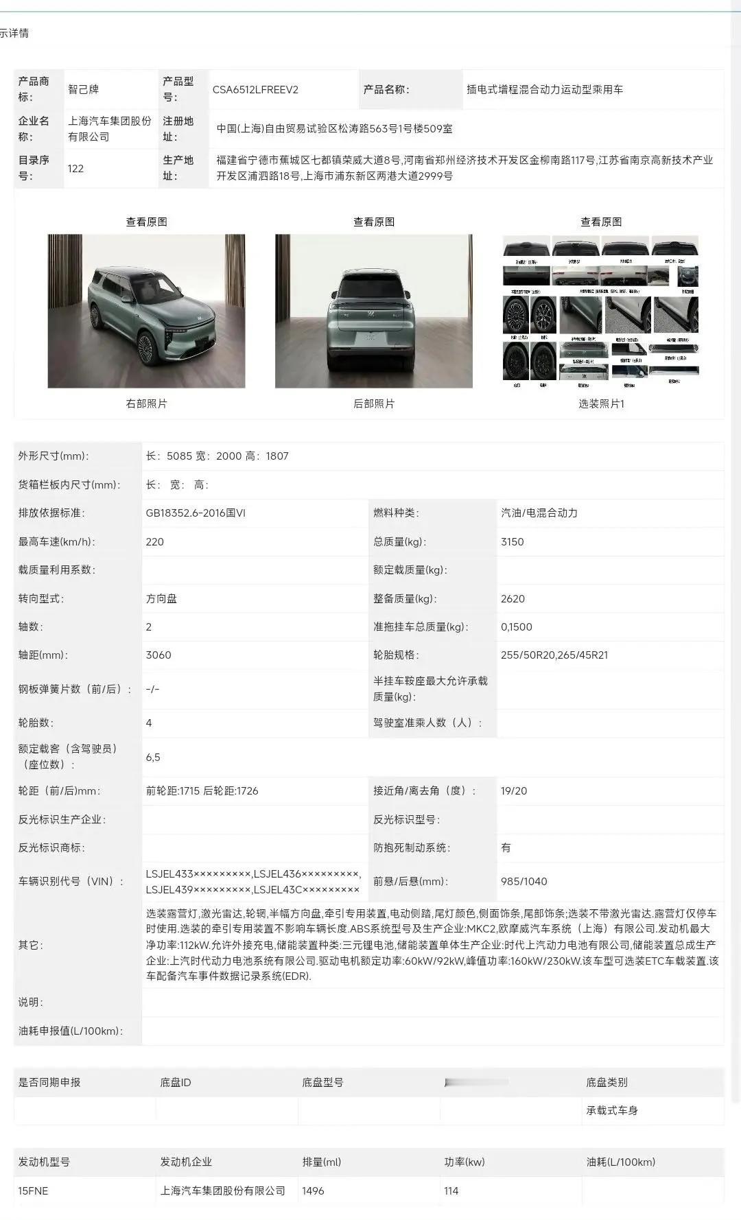 各位车友好!工信部新车公示里,智己LS8的“证件照”和信息都出来了。作为智己第一