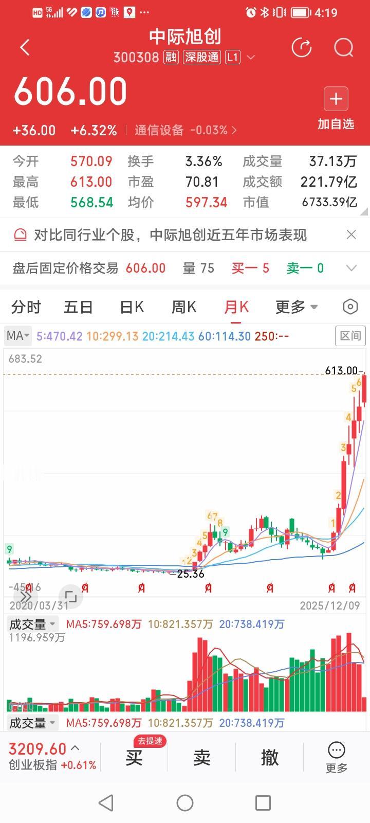 CPO涨疯了!满盘尽墨,CPO一骑绝尘,独步天下,看这K线图上直冲云霄的走势,似乎非得把天涨破个窟窿出来不可! 要知道,以“易中天”为代表的CPO概念股股价并非在低位,估值也已经高耸入云了,如中际旭创今年股价几乎已经翻了十倍了。难道入云端了就可以摆脱估值的束缚了? 其实高位疯狂拉升拔高就是主力屡试不爽的金融巫术、出货神器。 树不可能涨到天上去,一个技术含量并不高,产能可以随意扩增的光模块真的利润会无休止的增长吗?值得打个大大的问号! 年底到了,今年也该结账了,今年的明星到明年可能也该过气了吧?