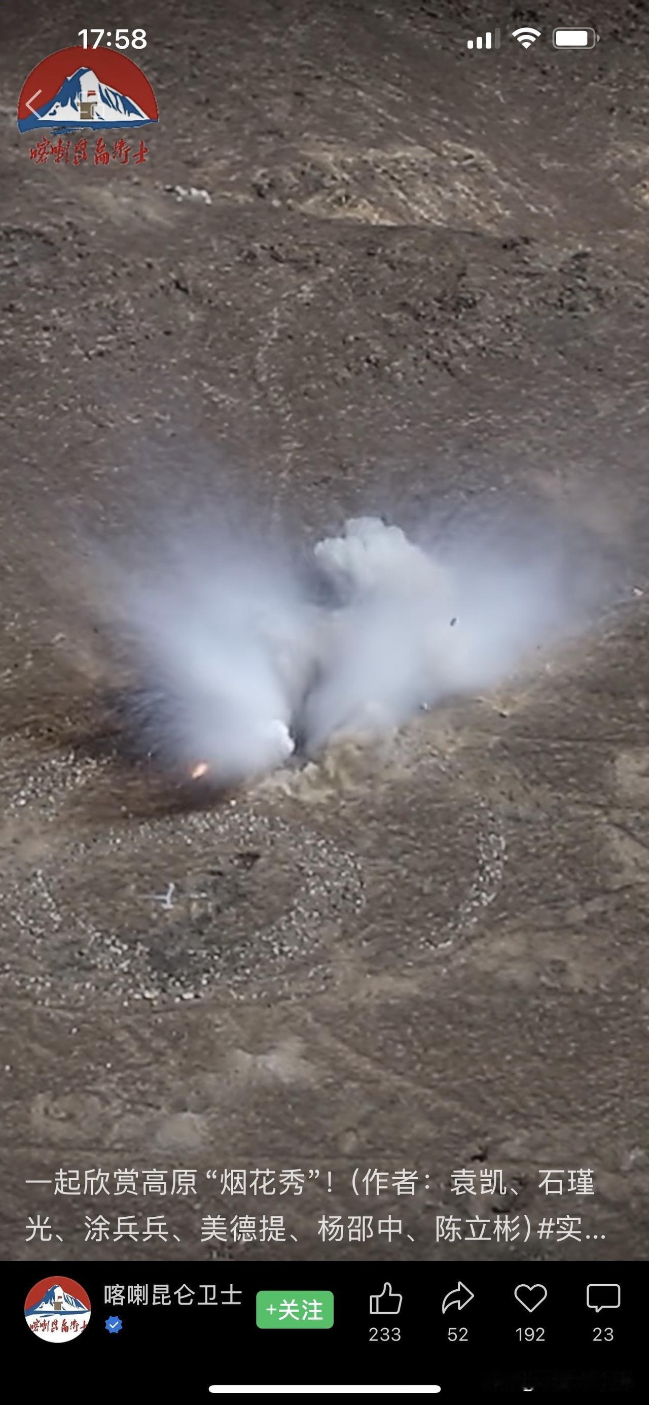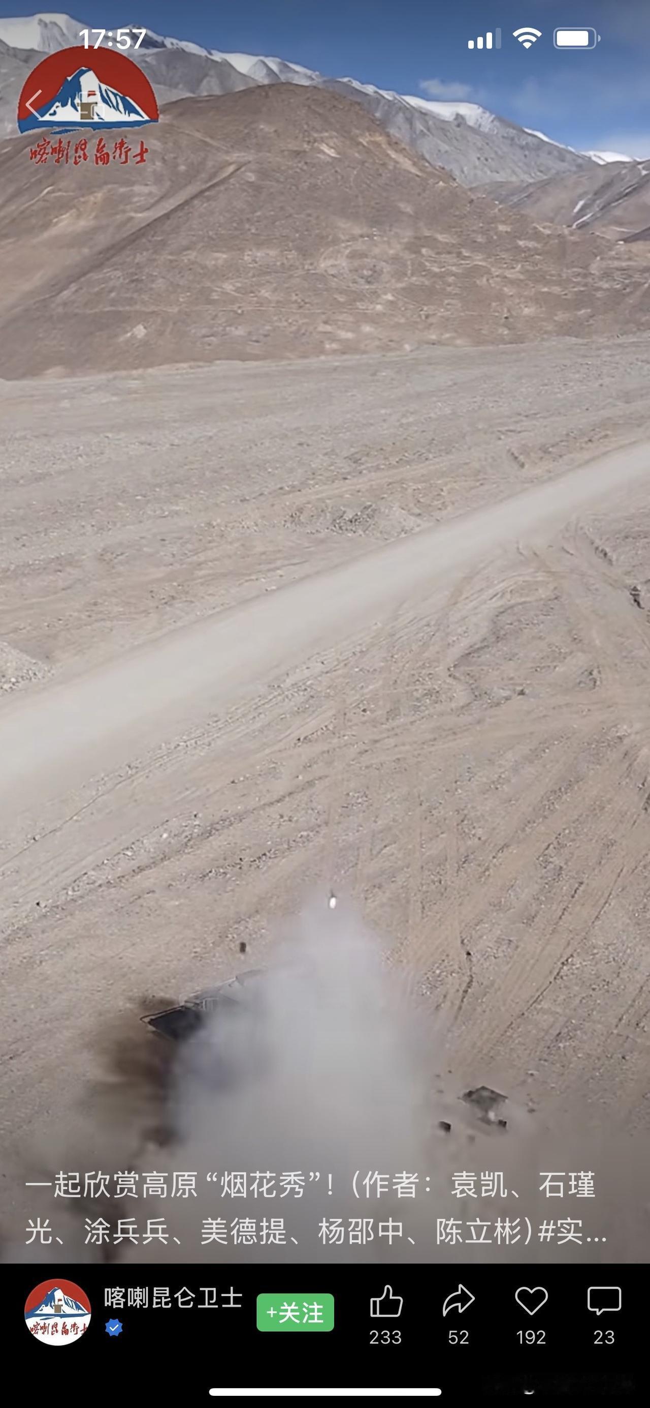 新疆军区所属南疆军区某合成团工化分队,在海拔5000多米的喀喇昆仑高原腹地,玩“烟火秀,国产防化集束火箭发射车火力全开,远距离发烟放火样样精通……[加油][加油][给力][给力][可爱][得意]