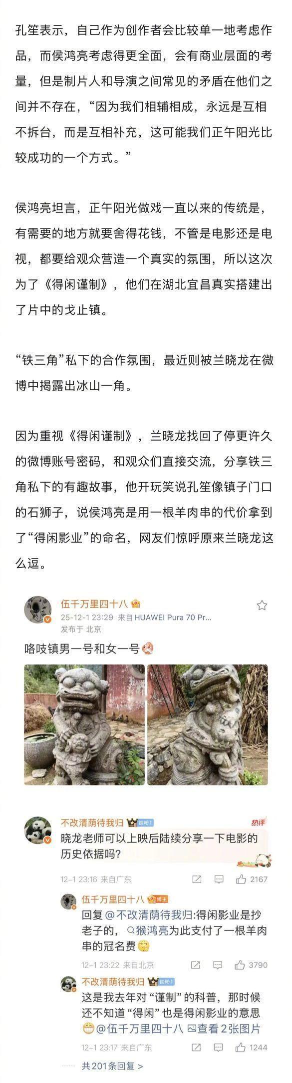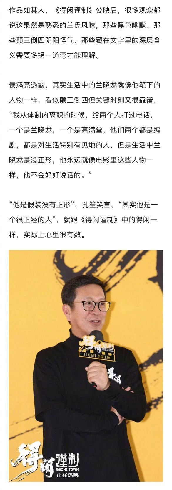 新浪娱乐娱理工作室对话孔笙和侯鸿亮的长文,文中也说《得闲谨制》是一部在真实的基础