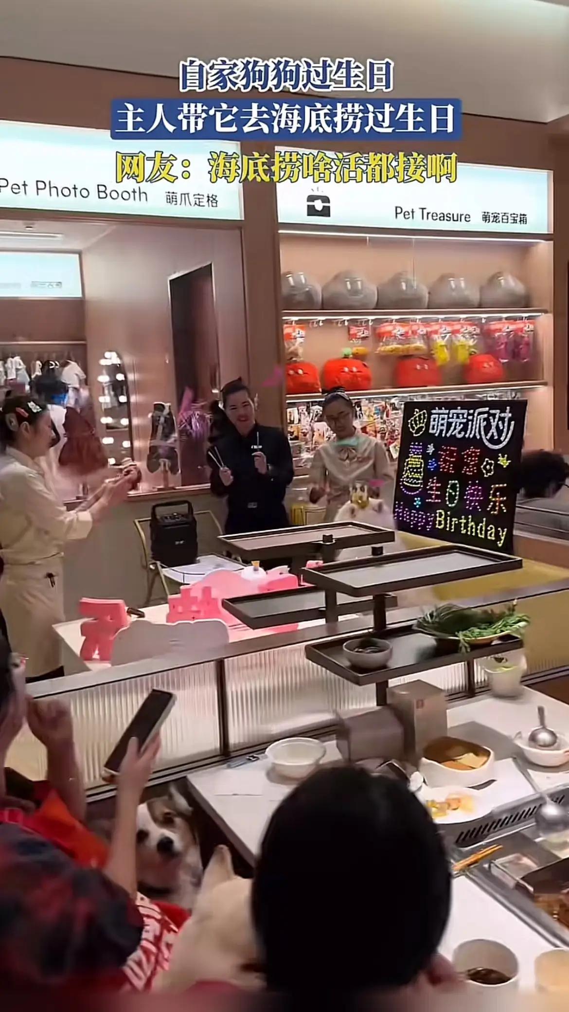 哪家海底捞允许宠物进入了,还给狗过生日,这简直是倒反天罡,从现在开始,暨西贝以后,海底捞我也绝对不去了,尽管我38年仅仅去过一次海底捞,但往后我肯定不会再去了,竟然给狗过生日。 别过早下结论,我怎么看说是这是一家宠物友好的店,既然是宠物友好店,那带狗进去没啥问题。 当地的市监部门在哪里呢?餐饮经营许可证是否要吊销?该餐厅是否涉嫌违反了食品安全法?请当地市监部门出来普普法! 别人咱管不了,我肯定不去这家店,也不让家里人去。人狗一个店,即使有隔断也不能接受,狗碰过的东西都介意,和是否消毒无关。 真滴还是假滴?如果是真滴,那海底捞就成了名副其实的宠物火锅店,进去吃的都是宠物。[笑哭] 海底捞没生意,让狗上桌把生意做,前古未有,今日展现,难以想象,笑掉大牙,各显神通,把钱来赚,最终还是,关门大吉。