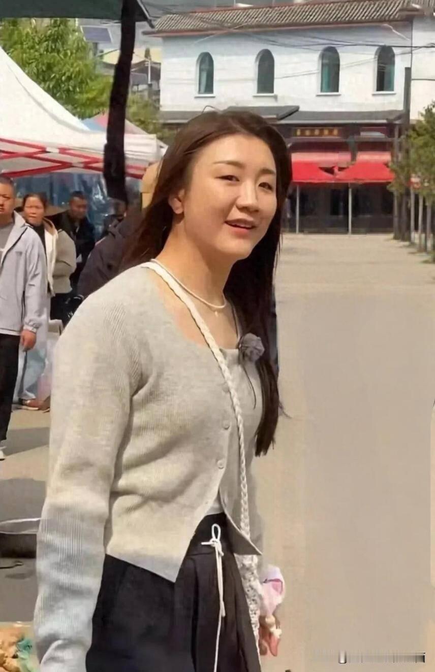 31岁的陈梦真的是一点点偶像包袱都没有,穿条宽松的裤子,也不弄发型,就这样去菜市