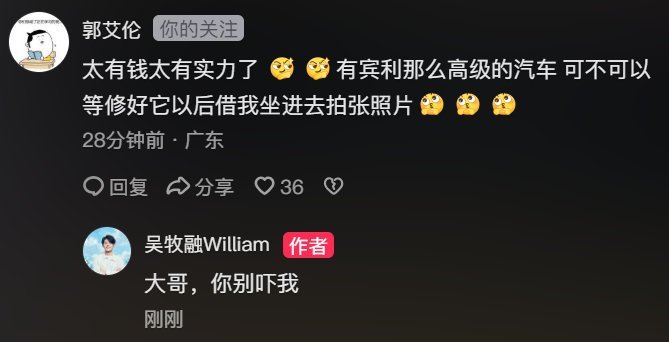 郭艾伦也想坐恋综吴牧融豪车副驾笑不活了!刷着《有你的恋歌2》霸总吴牧融视频,转头撞见郭艾伦想蹭宾利,一句“你别吓我”综艺内外双搞笑,没吴牧融我真的会剧荒,下期速速播!