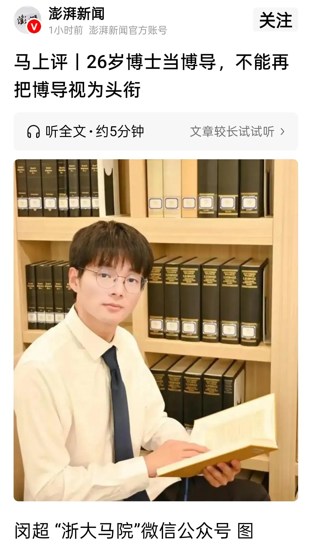浙大说闵超父母都是农民,并不能打消公众质疑。 第一,父母在家务农,并不意味着他的七大姑八大姨,以及对他的学业成长产生重要影响的人,都在务农。 这里面但凡有一个能量比较足的人,都可以成为他的背景人物。 浙大如此辩解,并没有说服力。 第二,人们质疑的是,26岁就担任博士生导师,是否过于心急了? 如果10年以后,估计没有人会说什么。 但现在一个26岁,博士还没毕业的小伙子担任博士生导师,大众不可能觉得里面没有猫腻。 第三,闵超的入选,说明浙江大学博士生导师的标准好像不高 虽然官方说入选了浙江大学百人计划,就可以担任导师,但毕竟是一个没有多少学术背景的马列专业。 更何况他的本科,也只是毕业于普通的211大学,郑州大学而已。 如果放在浙江大学其他学院,其他专业,尤其是理科相关专业,能聘请一个如此履历的人,担任博士生导师吗?