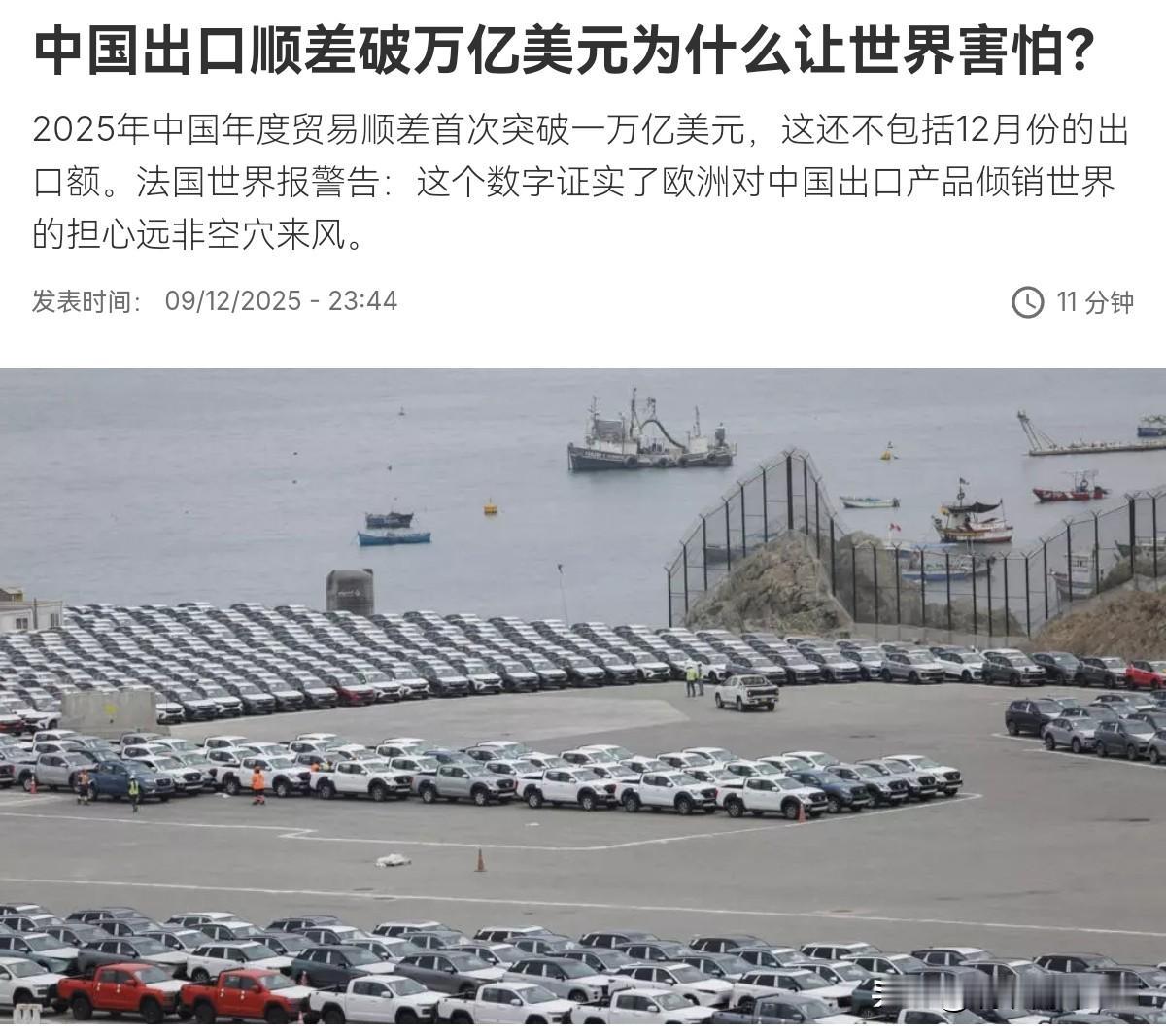 法媒非常不舒服!在我们出口顺差破纪录之后,法媒声称,中国正在“杀死”其客户!12月10日,法新社刊文表示,中国出口顺差破万亿美元,让世界害怕。这些数据为担忧中国“出口海啸”的人提供了佐证。当两方或两国进行贸易时,双方都会受益。然而中国不断寻求“倾销”市场来消化其不断增长的产量,因其国内需求无法吸收这些“过剩产能”,致使中国出口的狂飙席卷全球。 法媒表示,更廉价的中国商品,虽可提升他国民众的购买力,但远不能抵消中国对他国制造业的“冲击”。欧洲正沦为一个生产不断增长却“无法真正”刺激本国需求的中国这个国家的产品“倾销”场所。很显然,对于我们的贸易顺差破纪录,法媒明显感到非常的不舒服。因此,其急忙给我们贴上了一个“出口海啸”,“产能过剩”的标签。 但问题是,为什么中国的对外出口一直在增加呢?法媒却一句都不提。事实难道不是中国的产品在全球有竞争力,各国都需要中国的产品吗?在全球化时代,有哪个国家生产的产品只是满足国内生产的呢?法国生产的红酒,法国人能够消费完吗?德国,日本生产的汽车,难道都是只满足于德日本国市场的吗?现在中国企业的竞争力是越来越强,法媒为什么绝口不提自由贸易了呢? 事实上,我们并不追求贸易顺差,我们也需要美国的高性能芯片,荷兰的光刻机等产品,这些西方国家是不是不要搞贸易管制,限制我们进口呢?一方面指责我们的出口,一方面却搞贸易管制,这不是非常的荒唐吗?再者,落后产业本来就会在竞争者被淘汰。我们一直在提振内需,但提振内需,并不代表我们要降低对外出口。如果中国的出口立马减少20%,法媒会考虑我们国内的就业,企业破产这些问题吗?因此,这种批评和指责根本站不住脚。