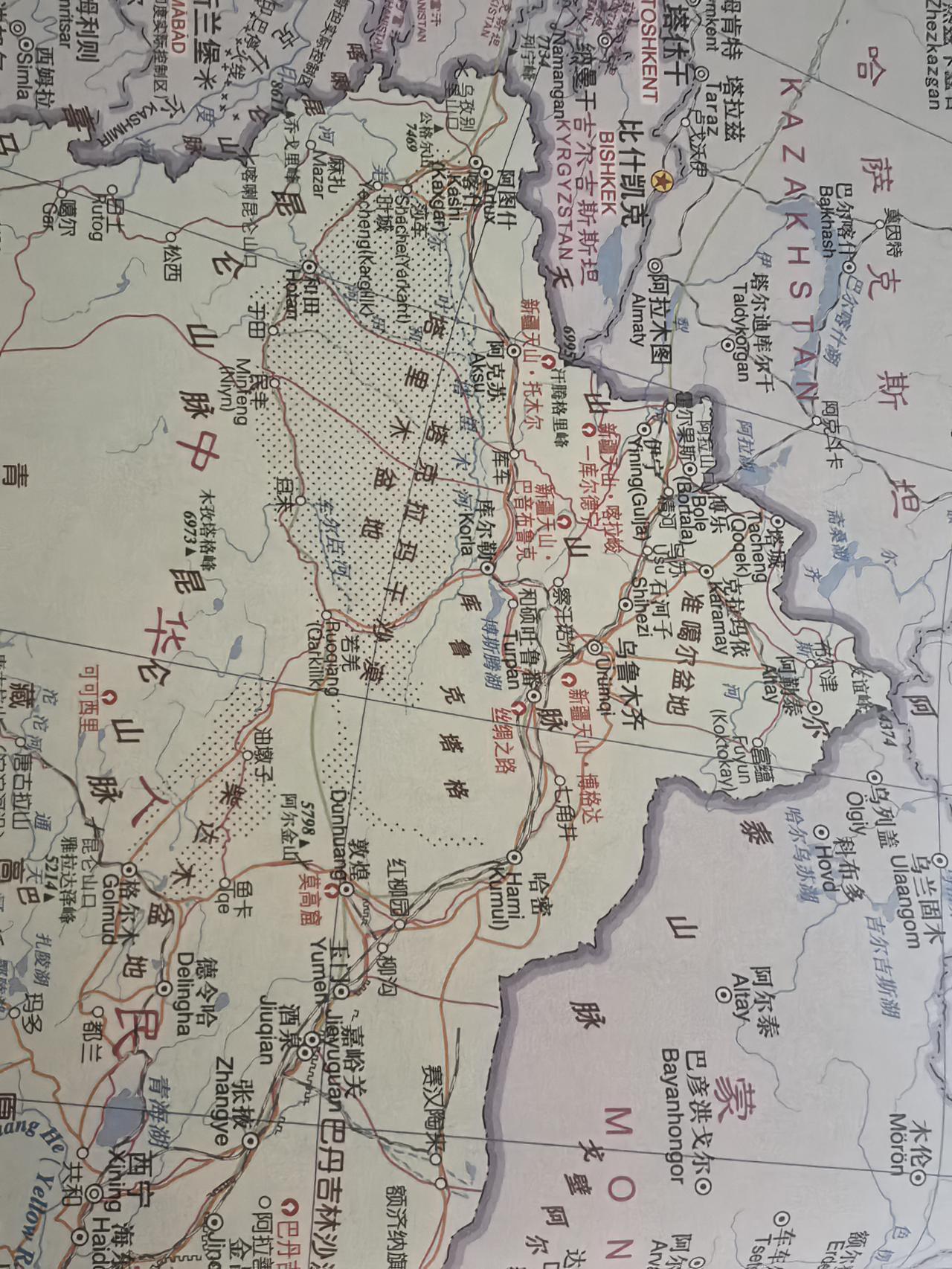 塔里木盆地拥有我国最大,世界第二的流动性沙漠-塔克拉玛干沙漠。 塔里木盆地位于中