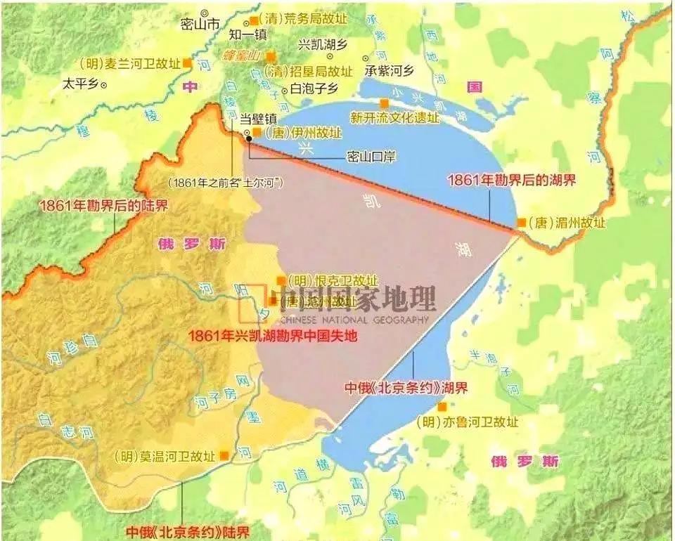 兴凯湖,原为中国内湖,1860年中俄《北京条约》签定后,变成了中俄界湖。 据史书