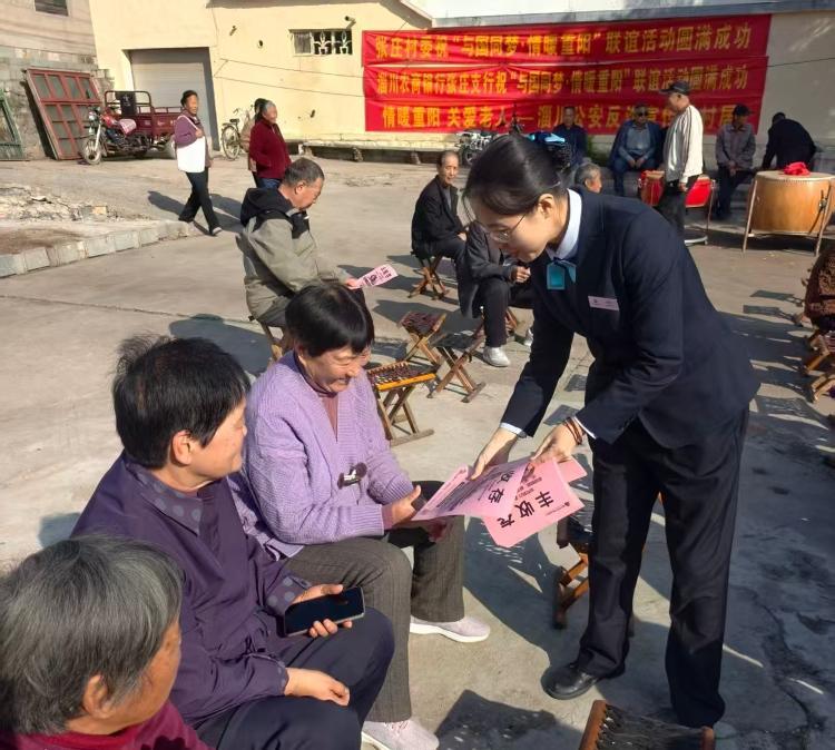 志愿服务冬日送暖,便民服务零距离。积极对接供热保障服务中心、街道、村委等,采取上门代收的方式,在供热服务中心、村委设立缴费专柜,让群众在家门口缴纳取暖费。累计为群众收取取暖费2000余笔,700余万元,将缴费柜台搬到老百姓家门口。洪山支行党支部重阳节走进洪山养老服务中心,开展“岁月沉淀温暖,我们给您陪伴”志愿服务活动,为老人们送去米面油等生活物资,与他们拉家常、问需求,用真诚陪伴让独居老人感受到“家”的温暖。张庄支行党支部参加“与国同梦情暖重阳”联谊活动,开展反洗钱、防诈骗等金融知识宣讲,为老百姓送金融知识。