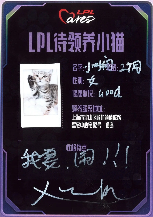 直播吧12月10日讯在此前的LPL全明星期间,腾竞联合上海公益宠物领养组织“猫岛”进行了一项公益活动,让LOL粉丝以“领养代替购买”的形式救助流浪猫,并且邀请了多位LPL明星选手参与,现场待领养的小猫全部找到领养人。