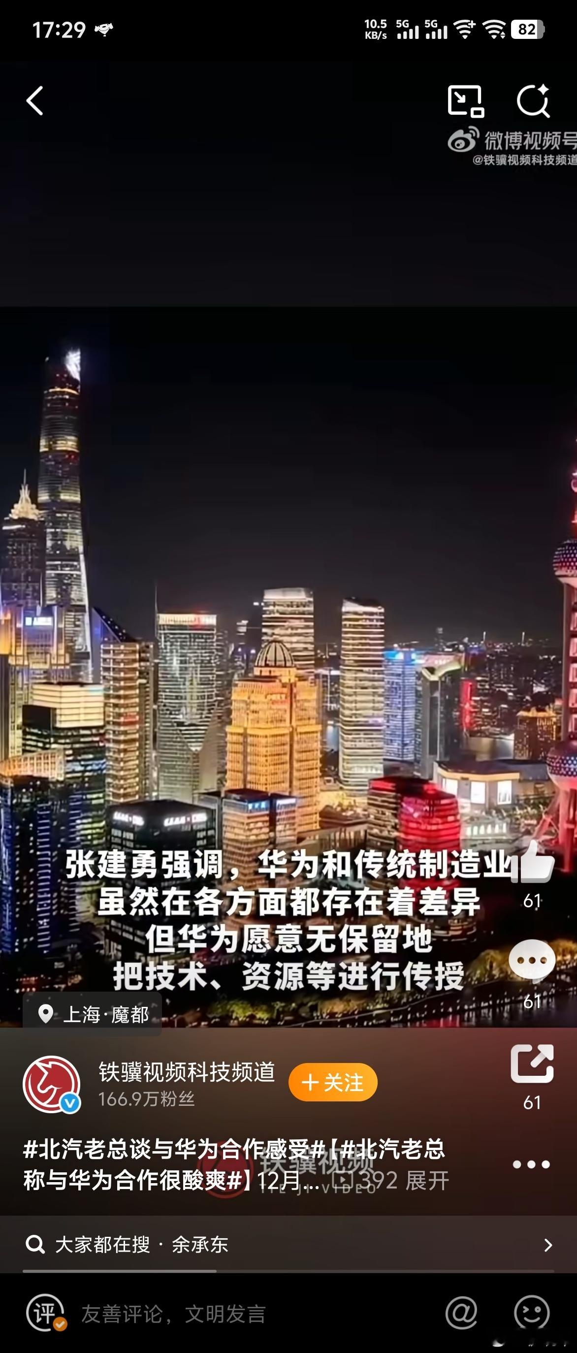 有没有朋友看上海那场鸿蒙智行五界大咖直播,北汽老总在圆桌论坛上聊起和华为的合作,