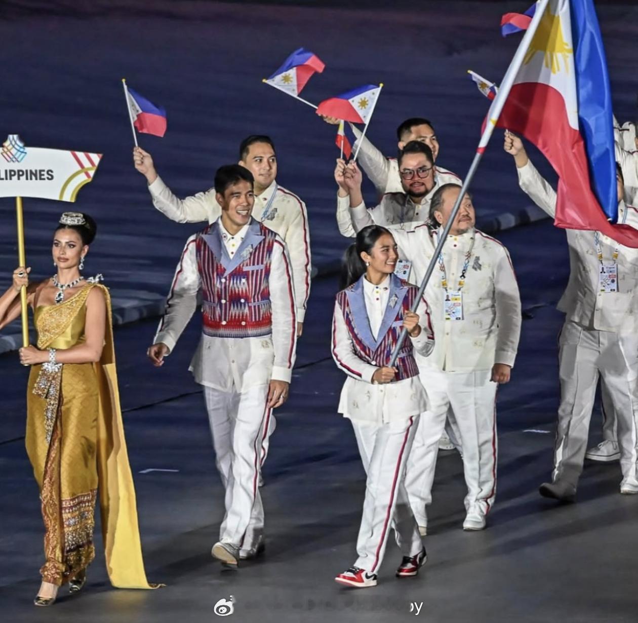 艾拉举着🇵🇭菲律宾的国旗在泰国举行的东南亚运动会开幕式上网球talking大