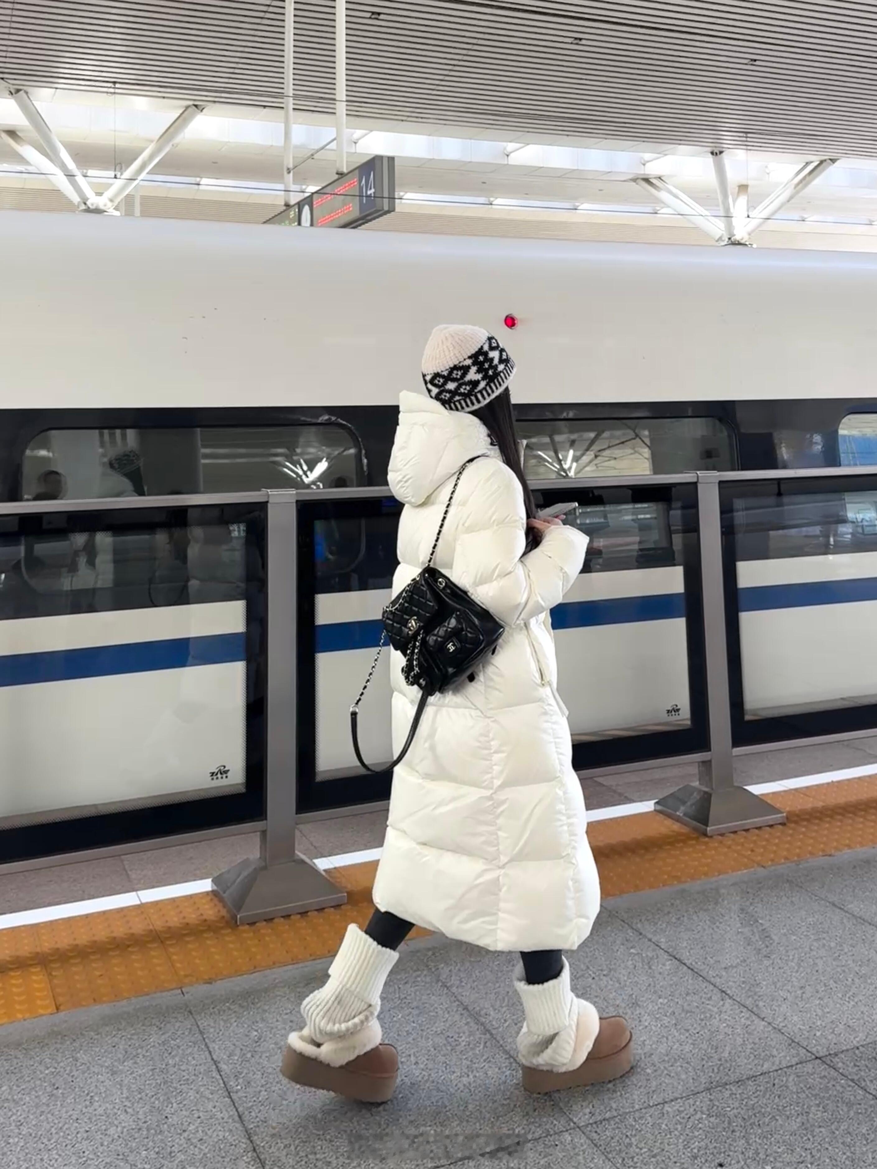 穿了300g充绒羽绒服在高铁站被要链接了😂不愧是我熬夜千挑万选出来的罗上长款羽绒服,这次跟朋友打算去哈尔滨玩在高铁就被人要🔗了哈哈哈~不得不说白色的羽绒服是真的很衬人很显气质啊啊啊