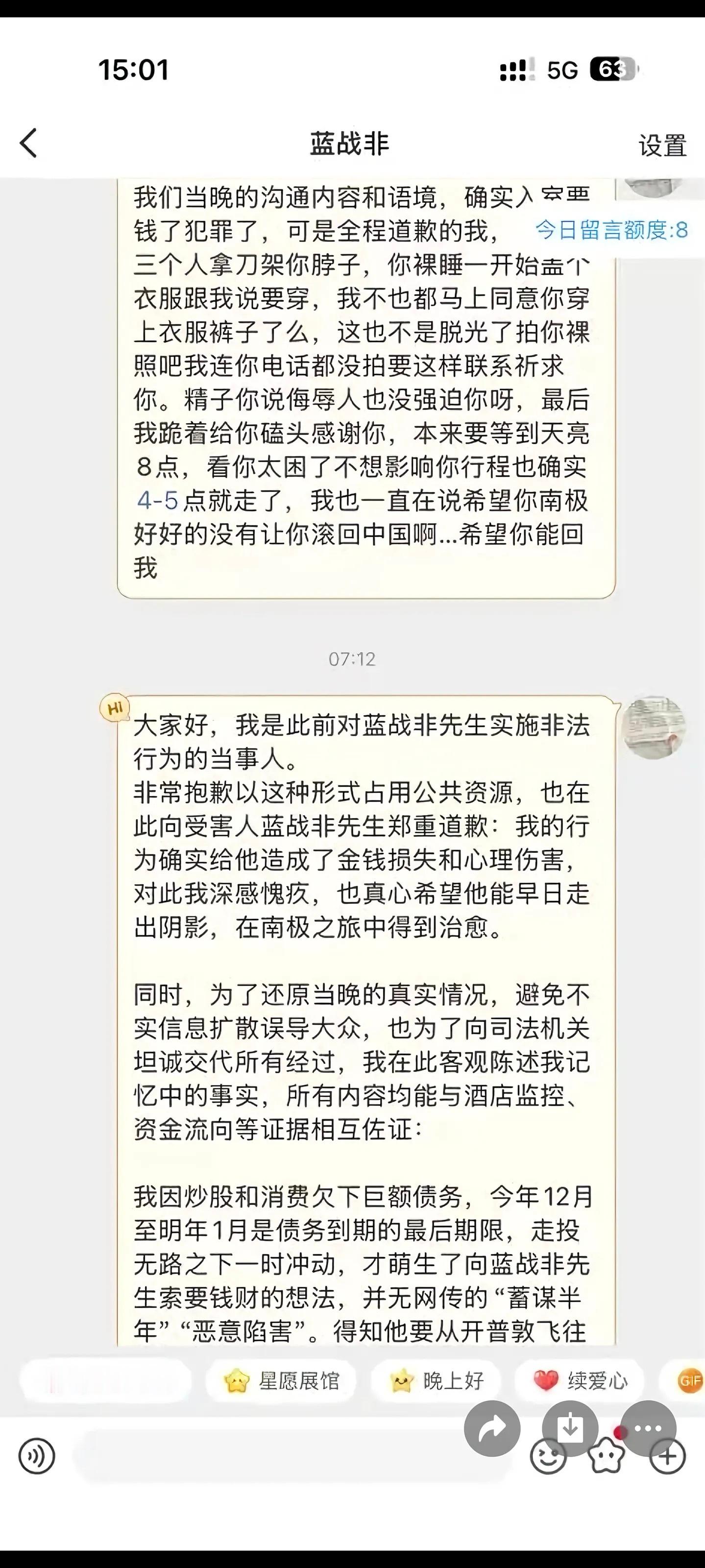蓝战非被绑架案有个新情况,和之前蓝战非说的有出入有人说自己是绑匪而且已经自首,因炒股和消费欠下巨债,所以铤而走险绑架了蓝战非,拿到了108.8万元巨款,但没有蓝战非说的更多细节目前不能辨别真假……