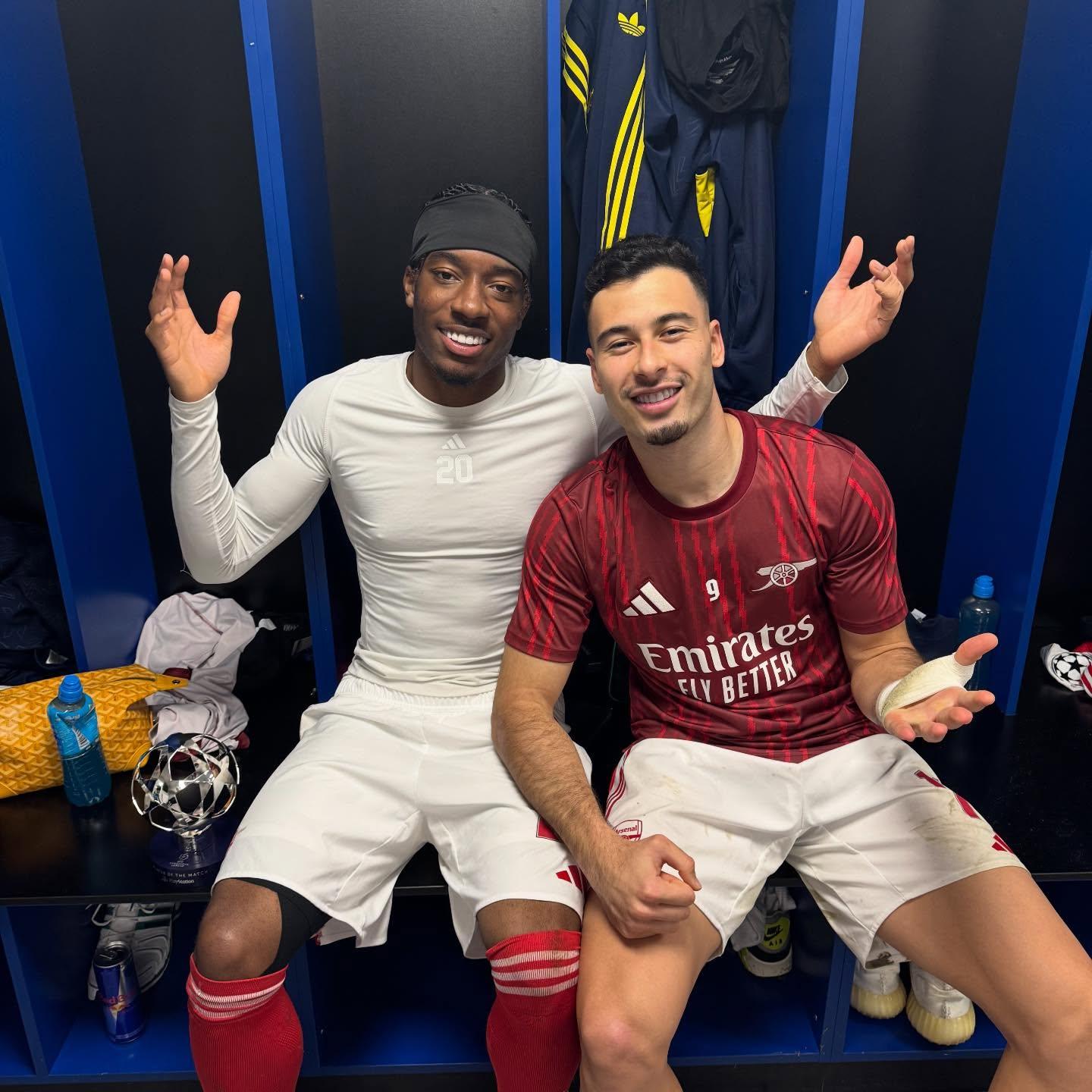 梅开二度+世界波破门,马杜埃凯赛后社媒晒与马丁内利合影