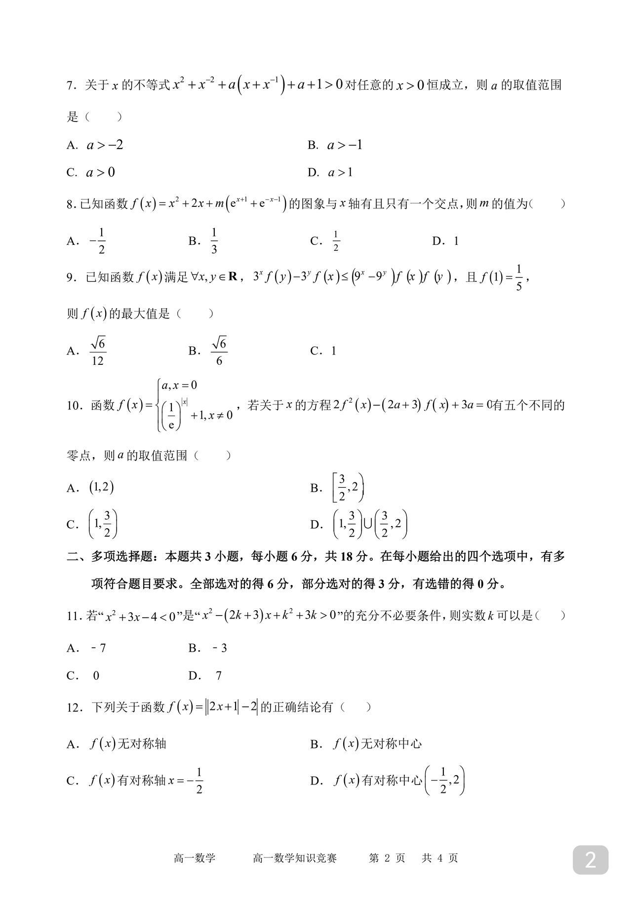 高一数学竞赛题 高中数学哪个年级最难 内行人告诉你:高一 高一的集合、函数以及不