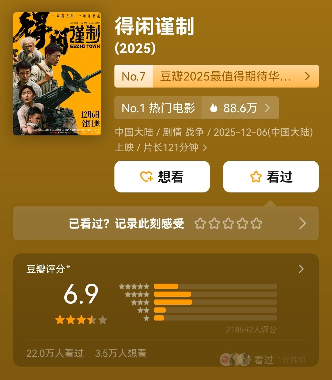 当电视剧的创作班底带着诚意叩响大银幕的大门,当一大帮可圈可点的演员出现在豆瓣6.9分的作品里,在2025年年尾,《得闲谨制》成了国产电影中一次值得肯定的勇敢尝试。