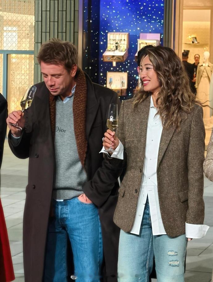章子怡郑钦文同框郑钦文帅气西装 郑钦文和Dior创意总监Jonathan And
