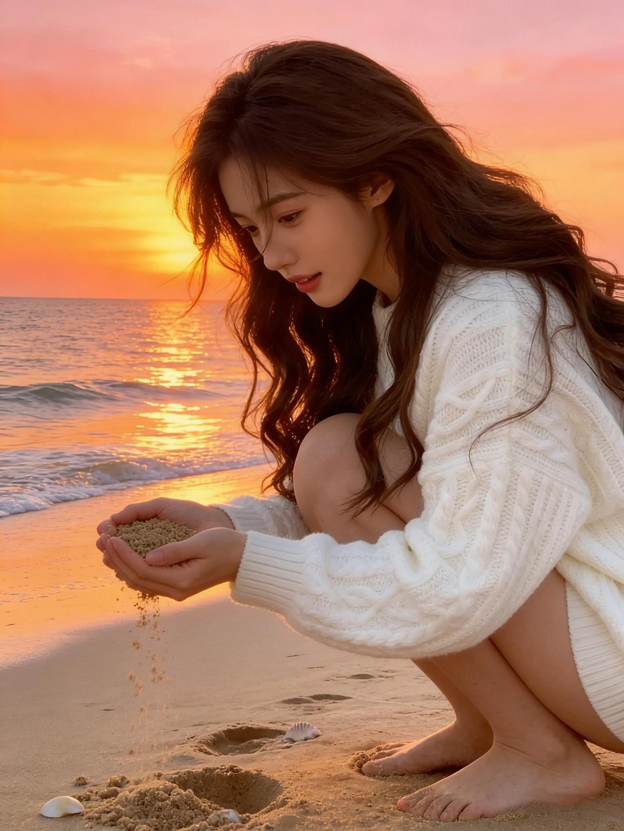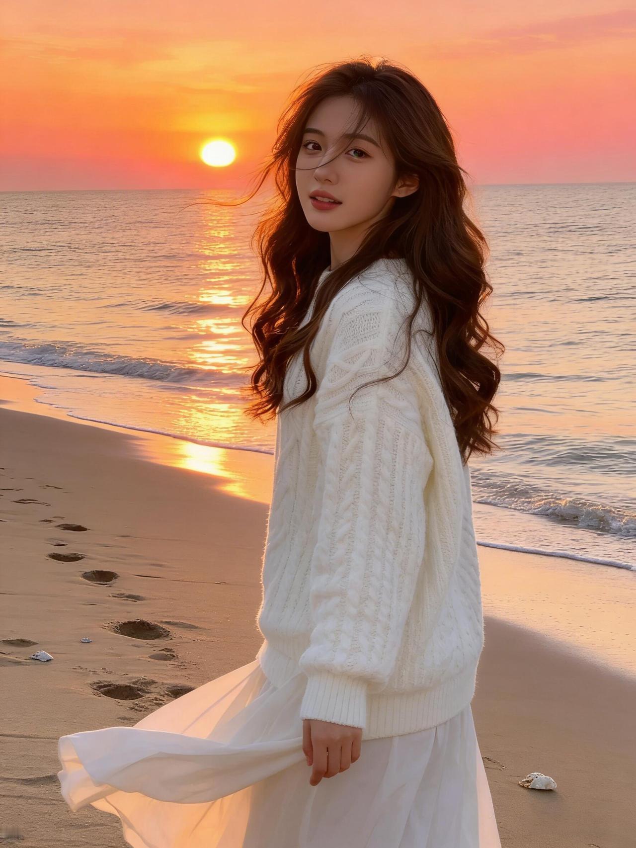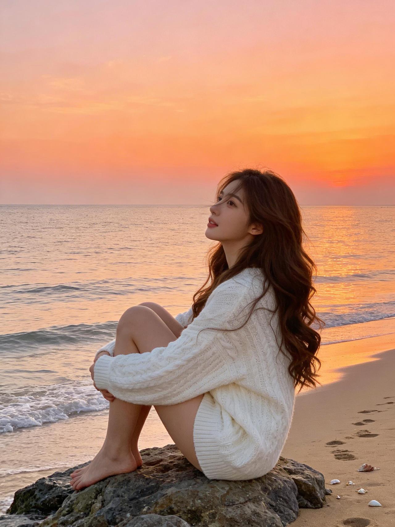 迎着海边第一缕橘粉晨光站定 海风卷着咸湿气息扑在脸上 裙摆被吹得轻轻晃 抬手挡了挡晃眼的金辉 赤脚踩进微凉的细沙 俯身拢了拢被风吹乱的发 转头望时 红日正跃出海面 把天和海染得透亮 光影落在衣上 连呼吸都裹着日出的温柔 这刻的治愈 是大海和晨光给的