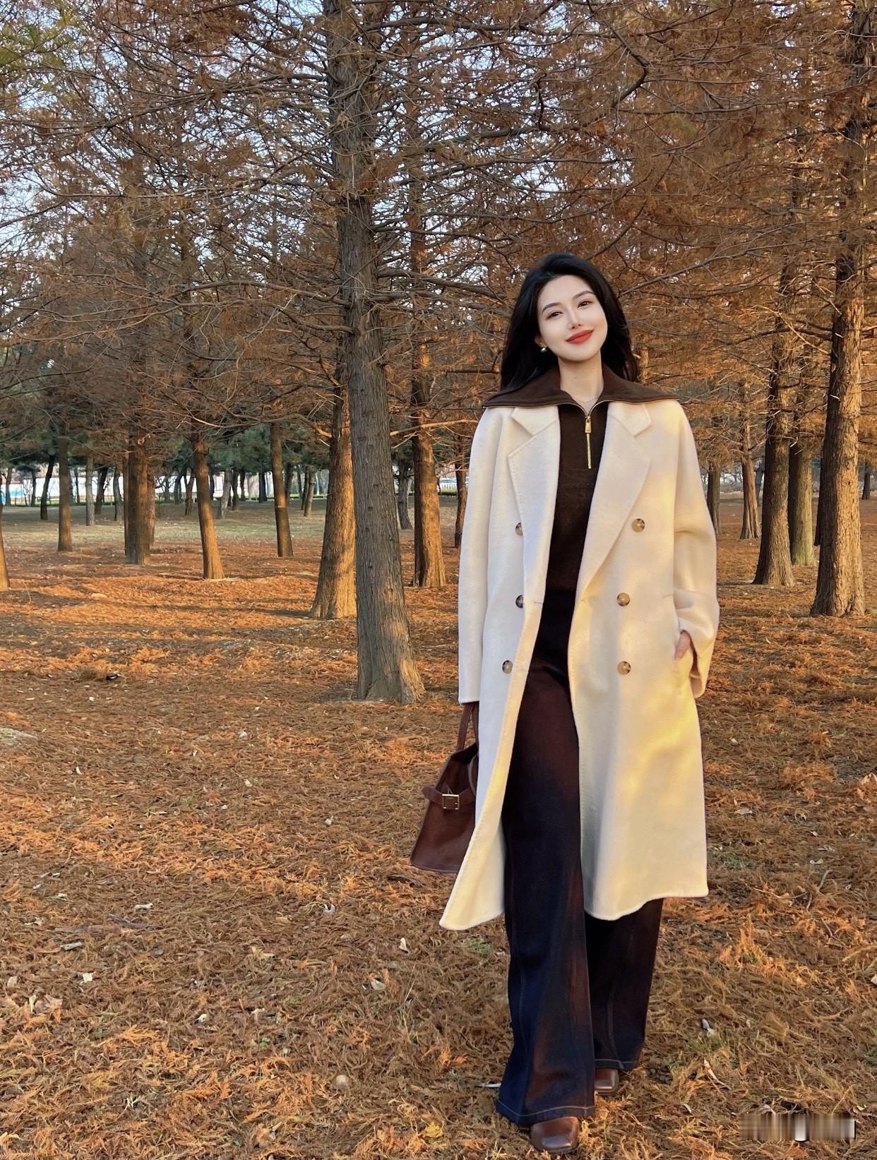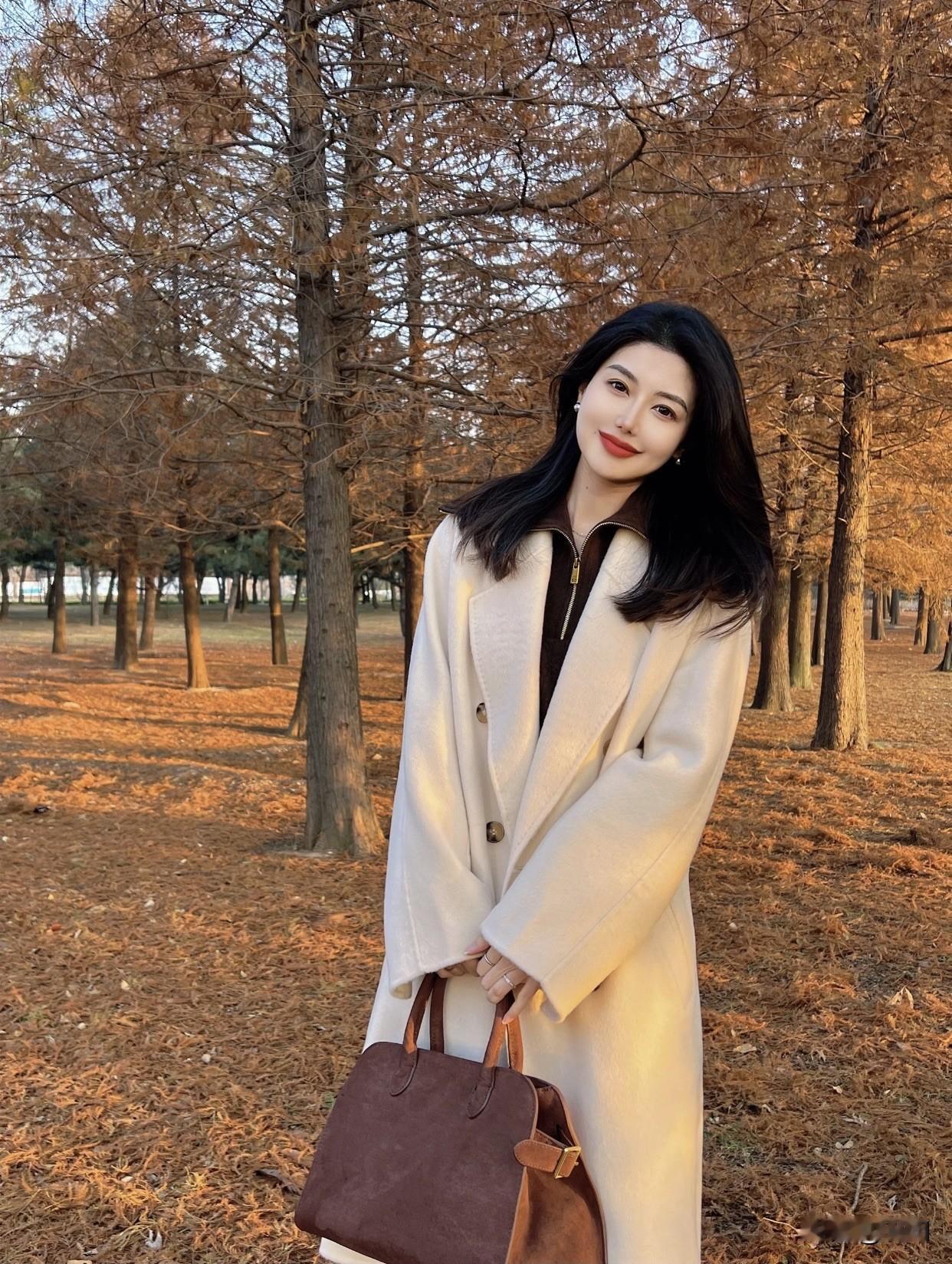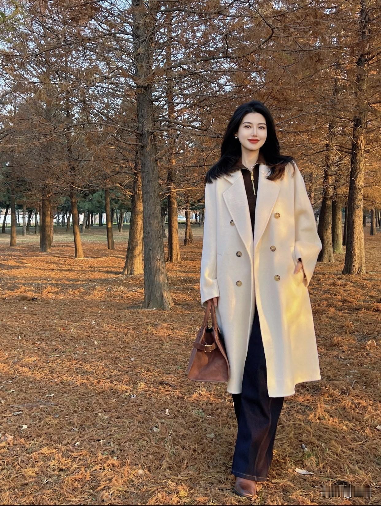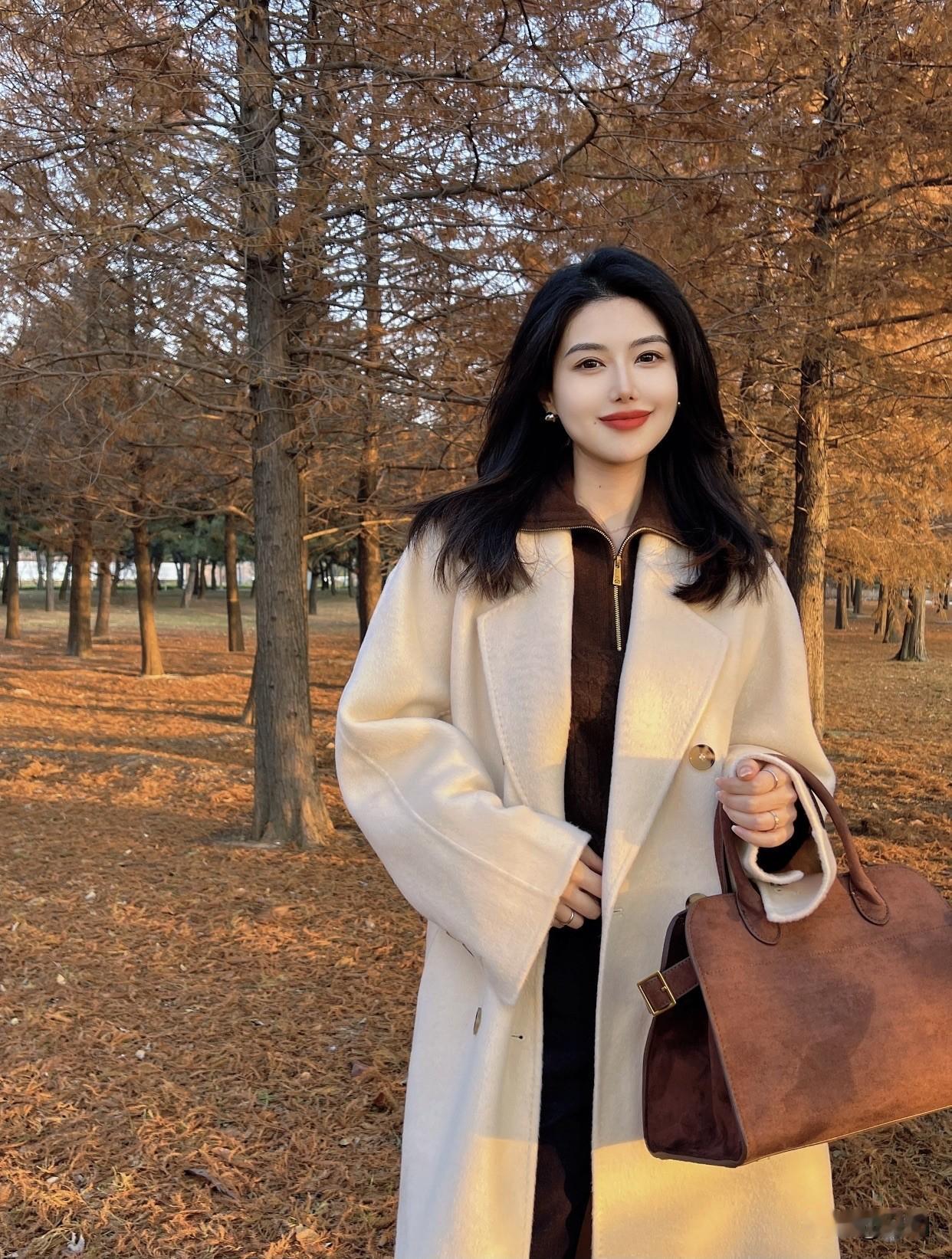 分享你镜头下的美好瞬间秋日暖阳下,优雅白大衣搭配棕色手提包,尽显温柔与时尚。