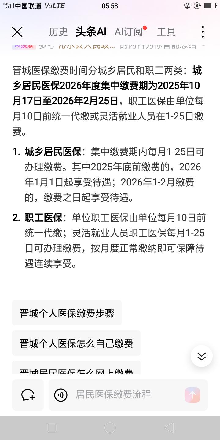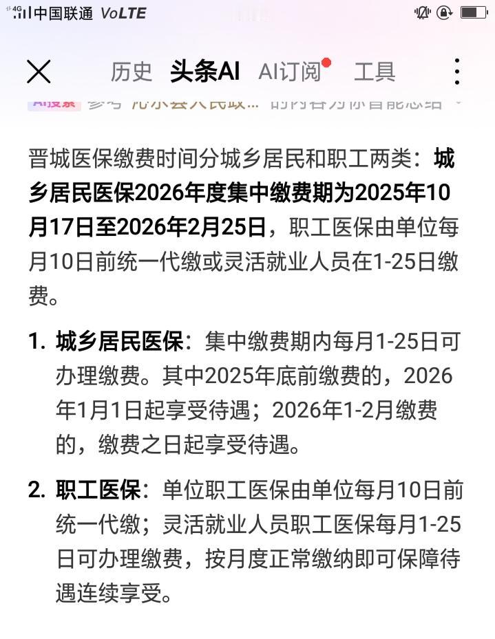2026年的医保还没交~ 看新闻说缴费日期截止到2025年12月底了,我想知道2026年2月缴费的话,有什么需要注意的?有啥区别呢? 什么是集中缴费期?还是有点看不明白,我看2026年交了也一样使用啊? 但是刚交了暖气费1400元,物业费2000元,真的没有钱交医保费了,不知道现在的人活着怎么这么难啊? 这么年轻都赚不到钱,就更别提到了老了,只能吃土了啊!