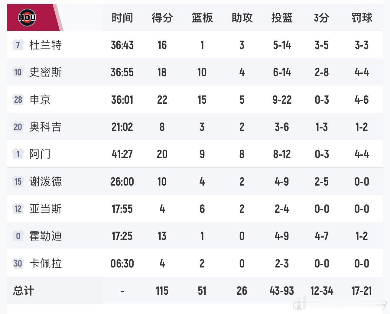 火箭115-113险胜快船,送后者3连败申京22分15篮板5助攻,阿门20分9篮板8助攻祖巴茨33分7篮板,小卡24分9篮板,哈登22分7助攻