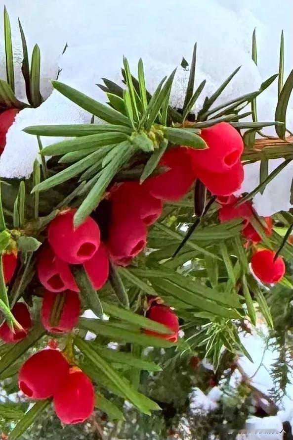梅花在雪中开放时通常是有少量叶子的。像红梅就属于落叶小乔木,冬季开花,花朵多为红