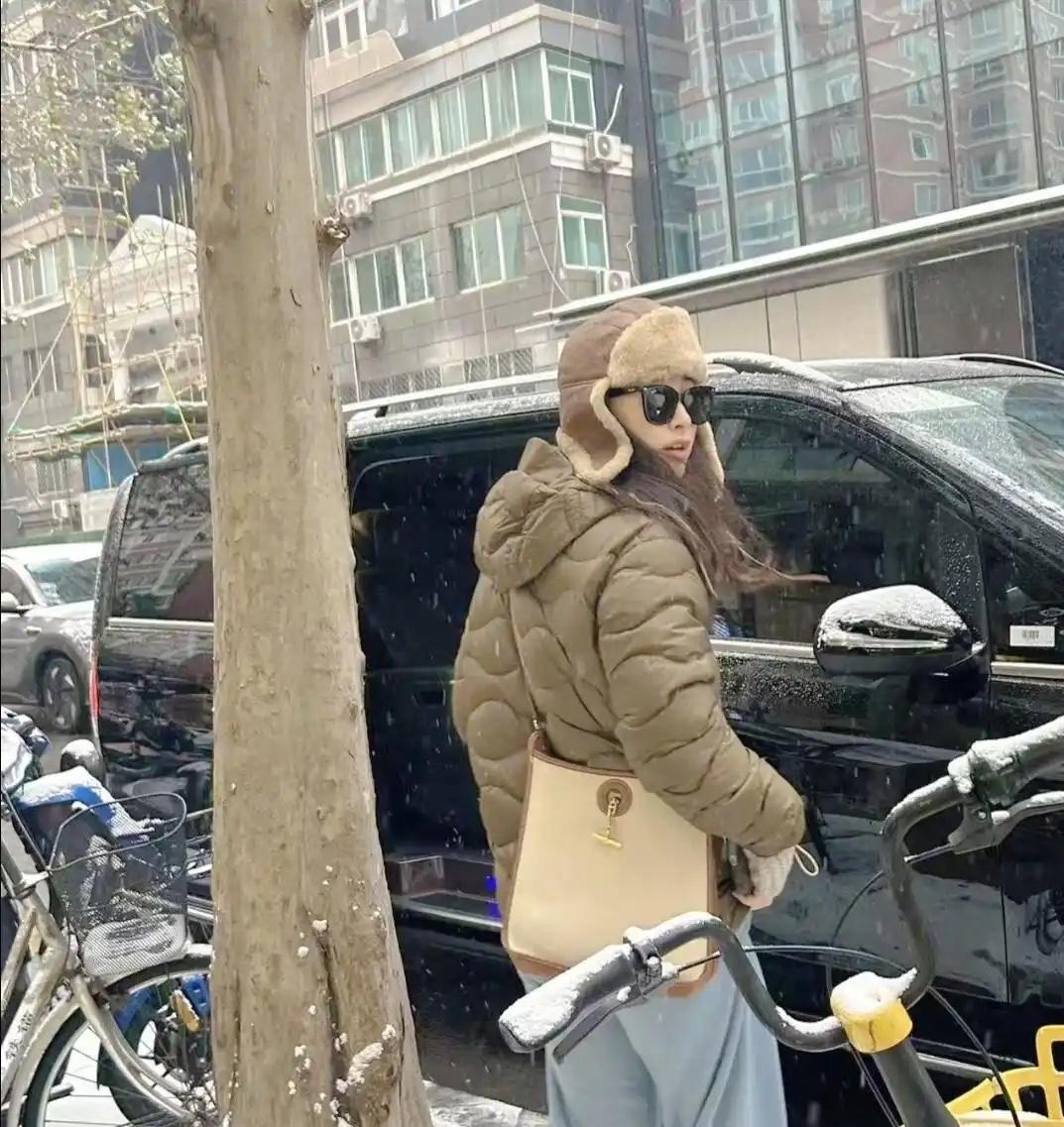 12月12日,演员朱珠更新动态,并配文“下雪啦”。她身穿羽绒服,头上戴了帽子