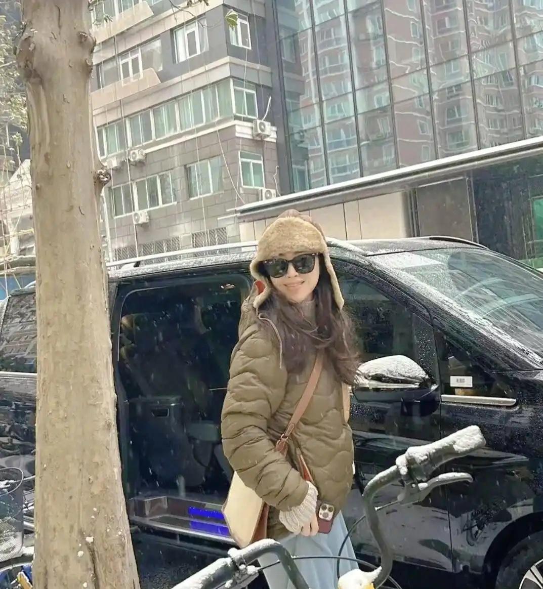 41岁朱珠北京下雪照,羽绒服简约高级,女儿扒窗看雪软萌瞬间