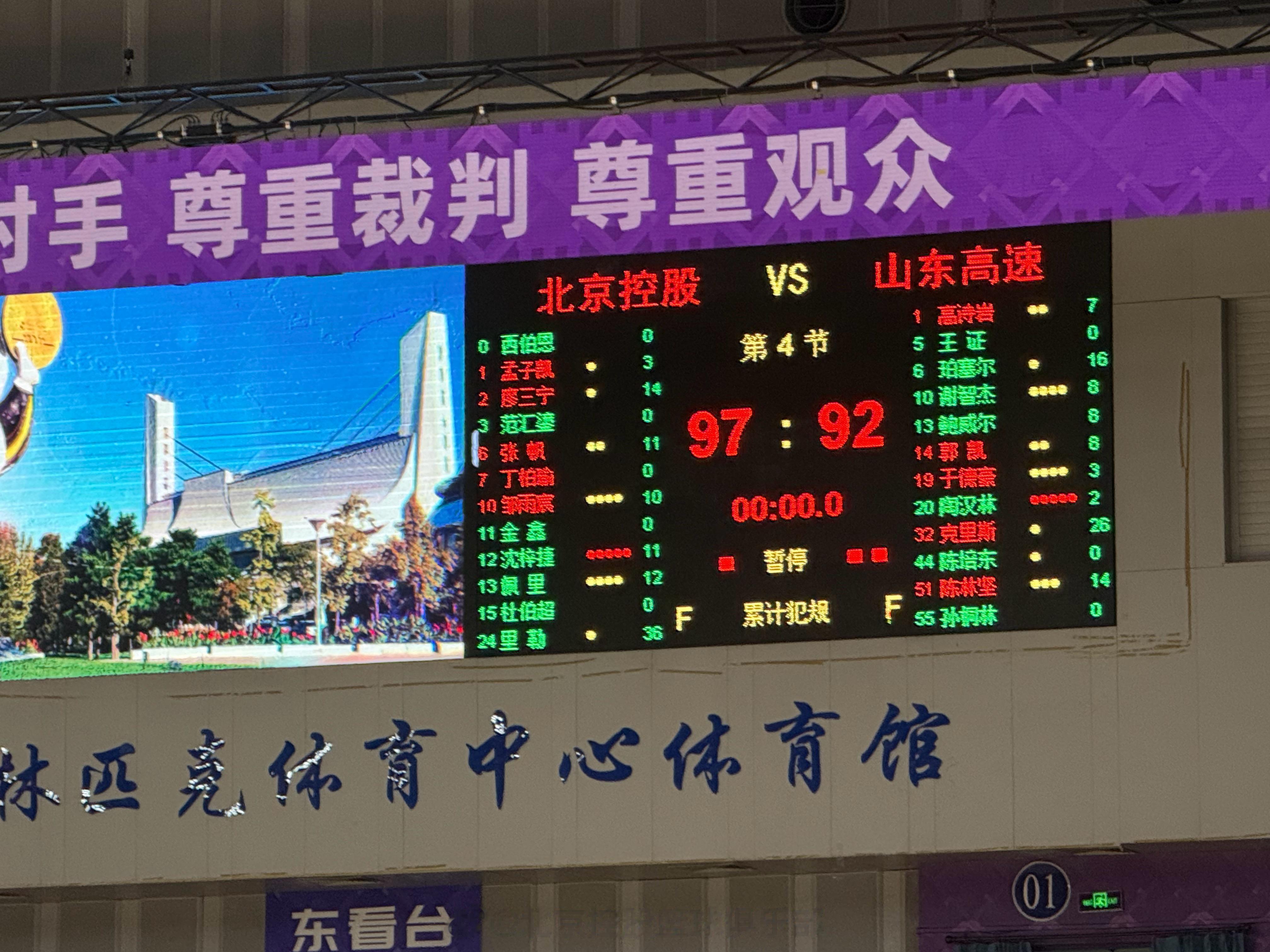 虎扑12月14日讯今日CBA常规赛,北控97-92主场战胜山东。