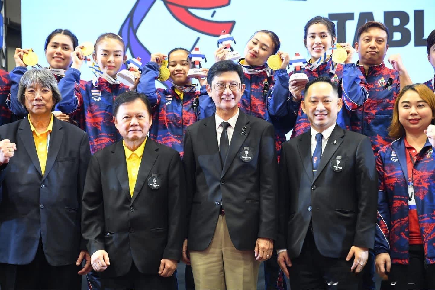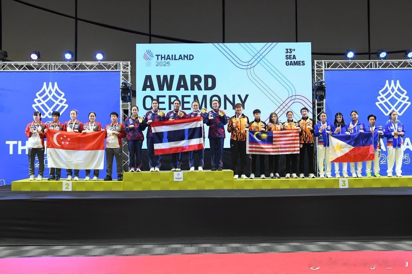 第33届东南亚运动会乒乓球男女团体项目颁奖仪式🥇🥈🥉女子团体项目🥇 泰国