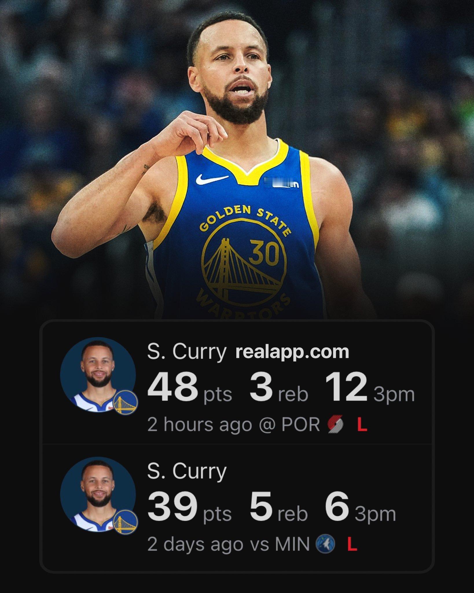 37岁老库里砍48分勇士都赢不了球,复出两场爆砍87分勇士两连败