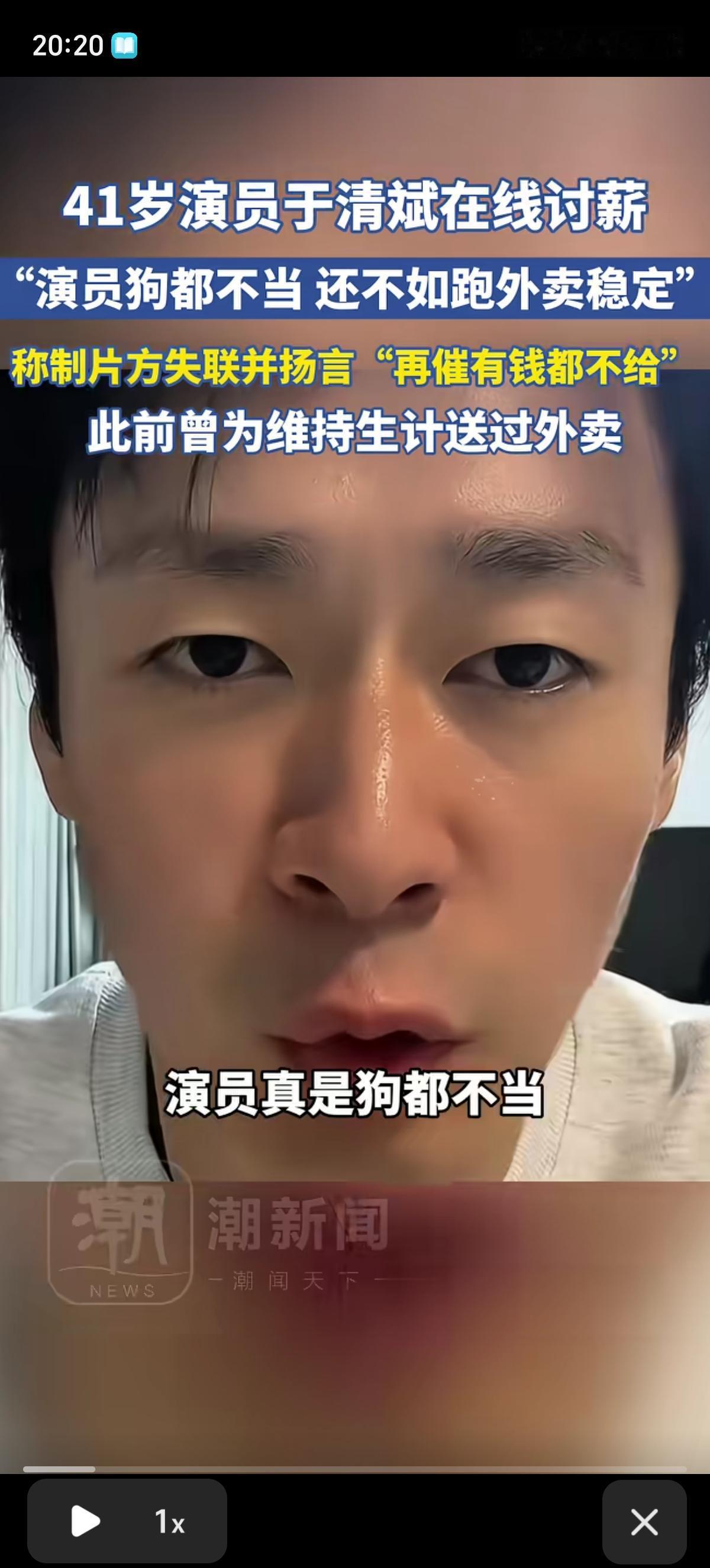 “演员真是狗都不当,还不如跑外卖收入稳定,至少平台不会不给咱钱吧”,41岁演员在