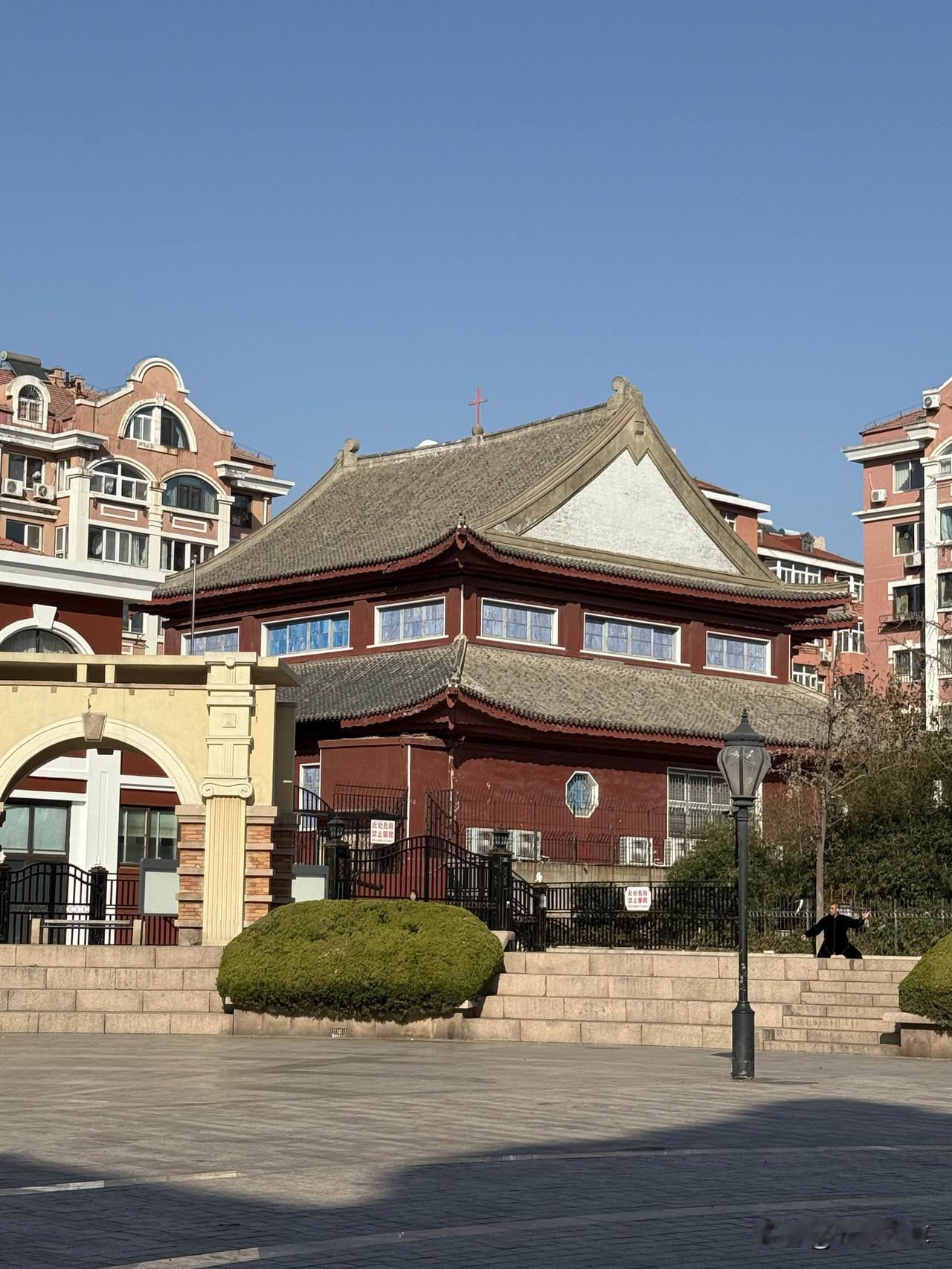 我上周去了青岛台东三路步行街我从东边走到西边,,西边尽头是一个广场边上有一个教堂,教堂的南面是一个大的建筑,就是专门为教堂做礼拜用的,教堂屋顶上的一个醒目的十字架标明了他的身份,文革期间就保留了这一个房子,后来又通过修建扩大的许多,中西结合的建筑格局形成了鲜明特色的教堂风格,我以前晚吃完饭了经常来这里散步,广场上人很多也很热闹,后来搬家了就很少再回到这里了,原创。