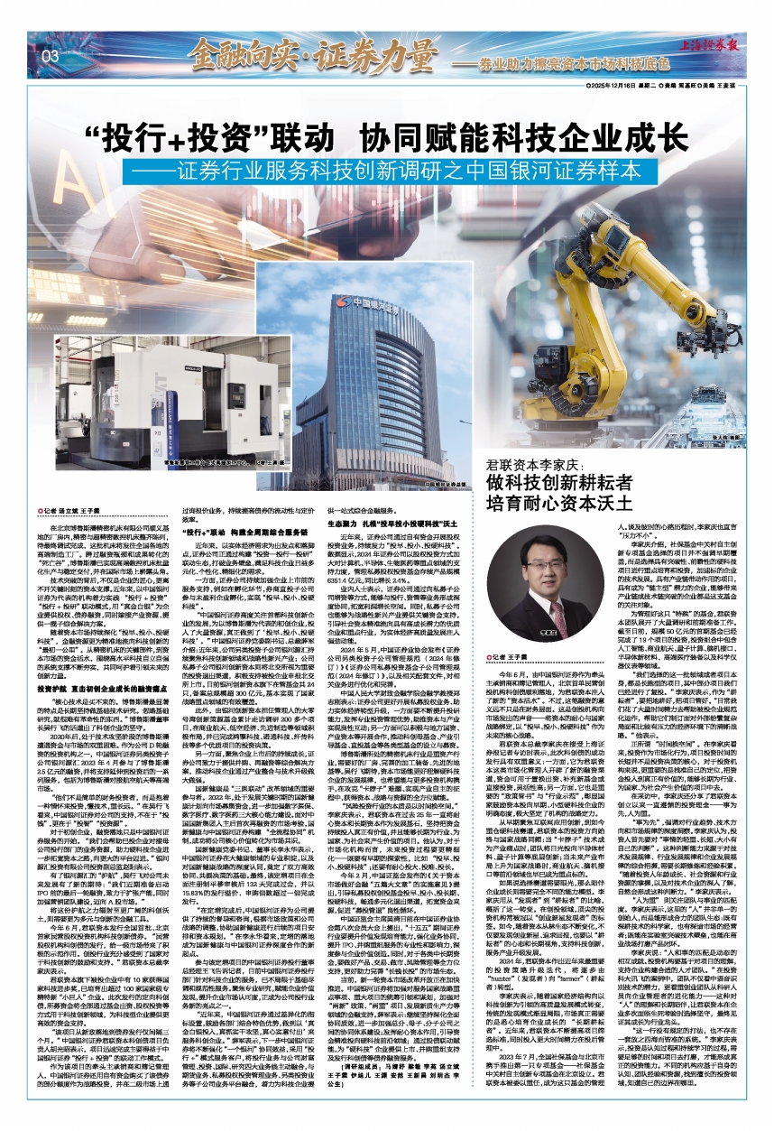 技术突破的背后,不仅是企业的匠心,更离不开关键时刻的资本支撑。近年来,以中国银河证券为代表的机构着力实践“投行+投资”“投行+投研”联动模式,用“真金白银”为企业提供股权、债券融资,同时嫁接产业资源、提供一揽子综合解决方案。