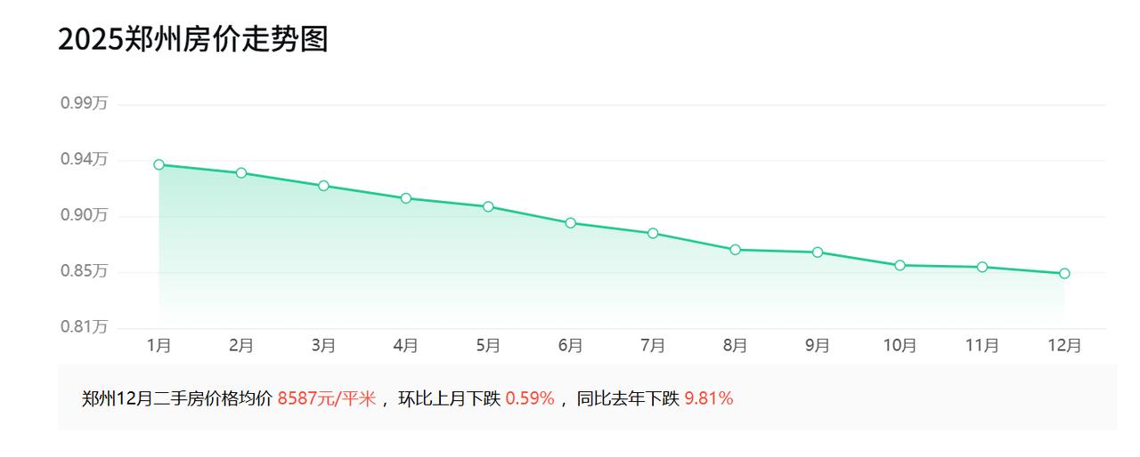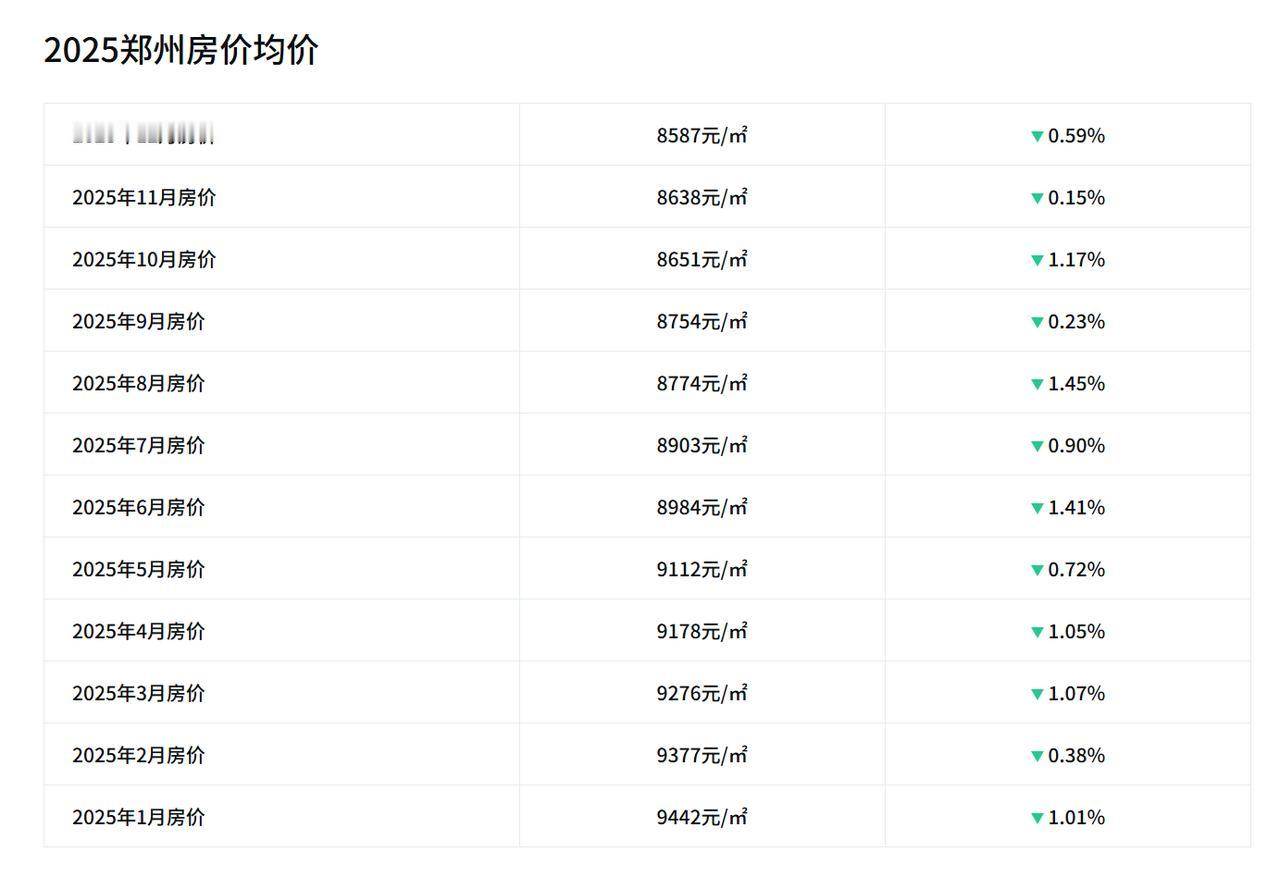 2015年11月,郑州房价均价8888元; 2016年11月,郑州房价均价11770元; 2017年11月,郑州房价均价12928元; 2018年11月,郑州房价均价13713元; 2019年11月,郑州房价均价13382元; 2020年11月,郑州房价均价13291元; 2021年11月,郑州房价均价13554元; 2022年11月,郑州房价均价13628元; 2023年11月,郑州房价均价12045元; 2024年11月,郑州房价均价9595元; 2025年11月,郑州房价均价8638元。   回顾郑州十年的房价,2025年11月的8638元相比2015年11月的8888元,下降了200多元。相比2025年1月的9442元,下降了804元,环比2025年10月的8651元,下降了13元。   2025年前三季度,郑州GDP达11189.8亿元(经最终核实,上年同期GDP修订为10678.7亿元),按不变价格计算,同比增长5.4%。分产业看,第一产业增加值153.1亿元,同比增长2.9%;第二产业增加值4173.7亿元,同比增长5.6%;第三产业增加值6863.0亿元,同比增长5.3%。截至2024年末,郑州市常住人口为1308.6万人,比上年末增加7.8万人。   郑州房价2025年11月比2025年1月下降了804元,下降幅度不小,价格基本上回归到十年前的水平。不过也得看区域,核心区域的房价不降反增,远郊地区房价下跌明显,拉低了整体平均价格。   那么,在刚刚过去的11月份,大家对郑州的楼市有什么切身的体会,咱们在评论区聊一聊。