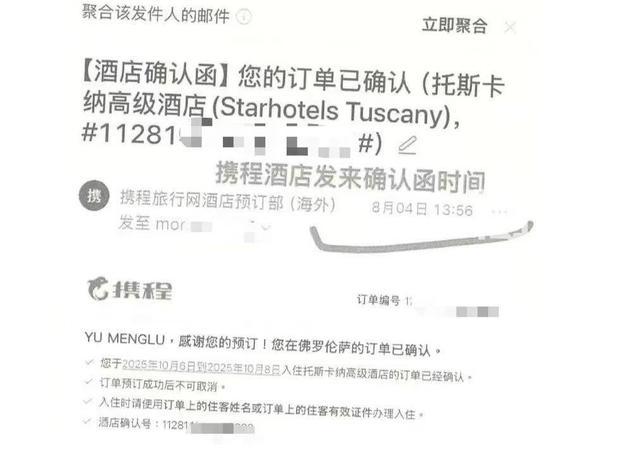 于女士告诉信号新闻(0532-80889431),为了准备10月份的意大利之行,她在8月4日登录携程,准备预订佛罗伦萨托斯卡纳高级酒店(StarhotelsTuscany)的房间。“我的计划是预订可退房型,因为签证尚未办理,必须预留退改空间,但操作时误选了一个‘家庭连通房’套餐。”于女士说,她马上发现这个套餐带着“不可取消”的备注。