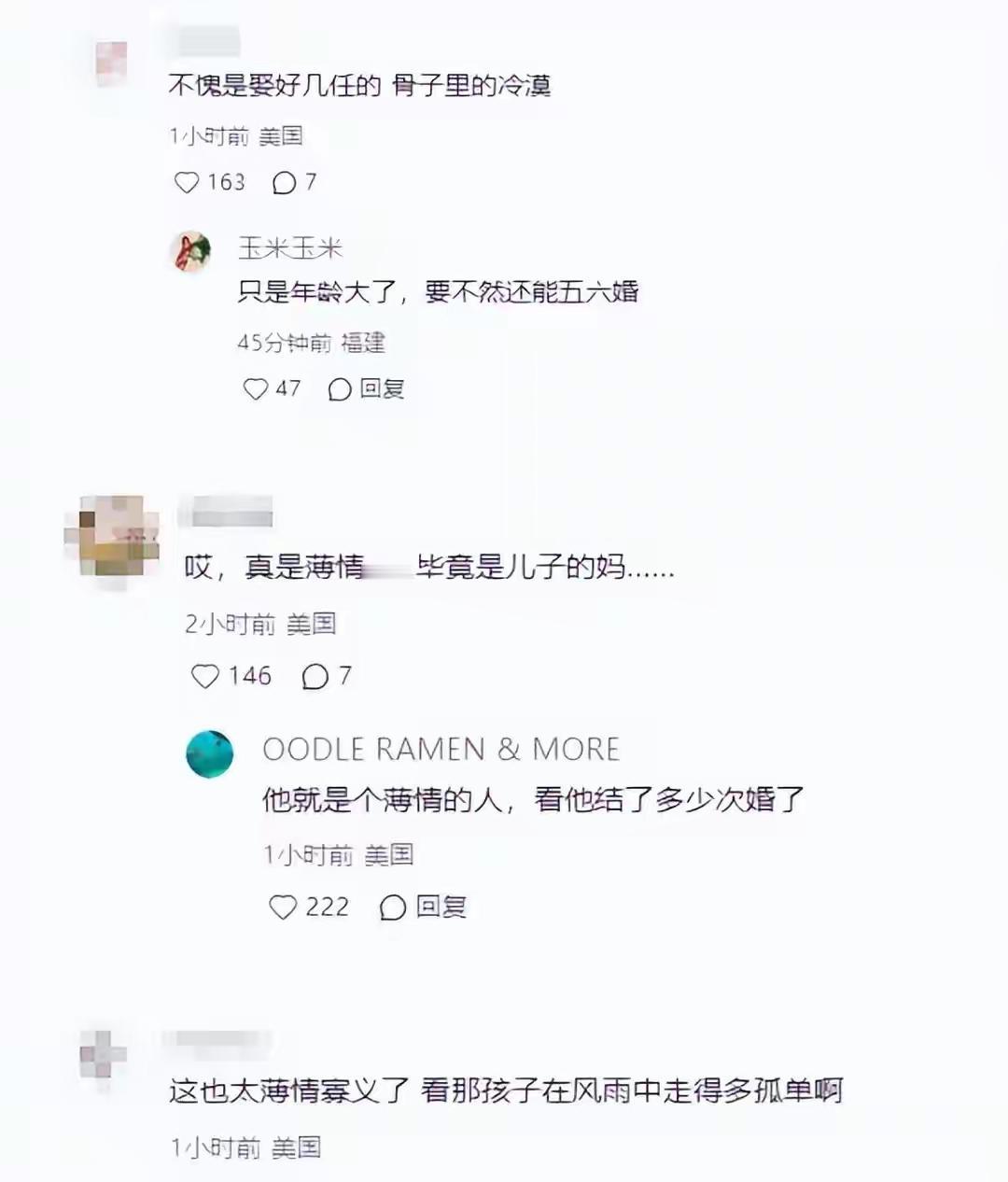 许亚军被骂死了! 前妻何晴因为癌症去世,许亚军不但没有回来参加葬礼,还在美国带着与四婚妻子生的小儿子在饭店吃饭,脸上毫无一点悲伤之情! 然后一大群网友开始指责许亚军,有说他骨子里冷漠的,有说他薄情的,还有的说难怪娶了好几任,如果不是年纪大了,估计还要5婚,6婚…… 不过,我对此有不同意了!我觉得有道德绑架的嫌疑! 第一,许亚军和何晴离婚13年了,许亚军也再婚了,如果他参加,他以什么身份参加? 第二,许亚军有家室如果他去,他现任老婆会怎么想? 第三,何晴在世的时候说,他们虽然离了婚,但是他们处得挺好,许亚军把儿子也照顾得好。说明他们之间并不是老死不相往来,还是朋友! 所以,那些辱骂许亚军的人,如果你换位思考一下,你看你自己会怎么做?