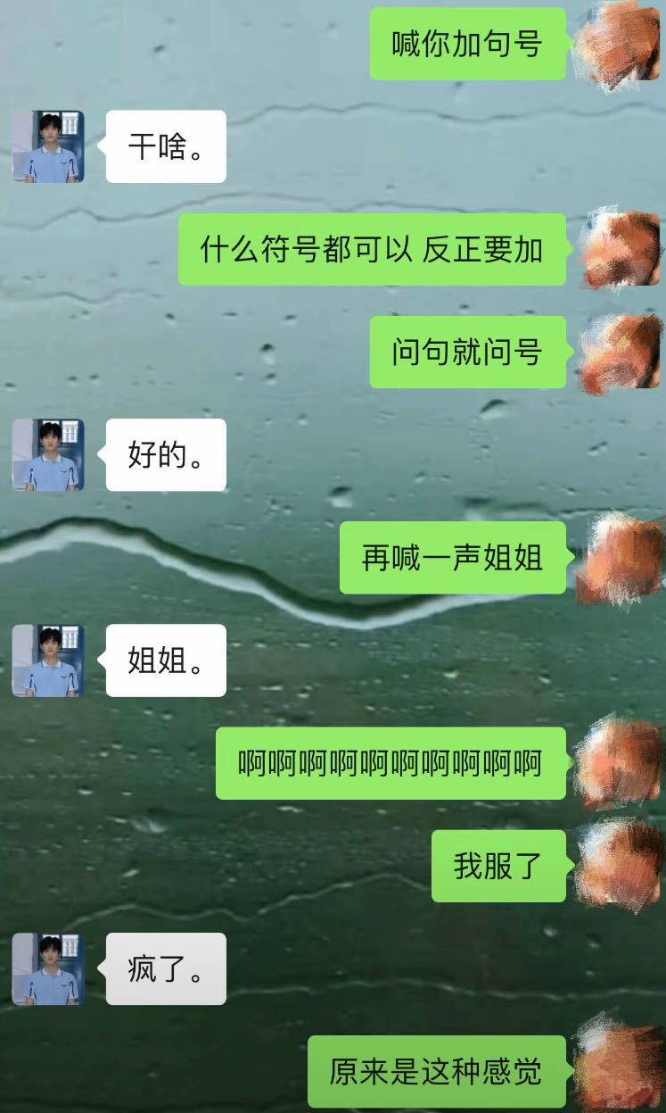 狙击蝴蝶第一批受害者出现了看完《狙击蝴蝶》都疯了!第一批受害者已出现!从模仿李雾发“可不可以不要只把我当成……”开始,到每句话必须带句号,再到强迫你换头像语音连环狙击。一口一个姐姐,张口闭口最喜欢姐姐了!只喜欢姐姐、好想姐姐~绿茶弟弟+忠心小狗的双重暴击,就是这个味道爽!岑矜的快乐我总算懂了!大眼杯表彰小会