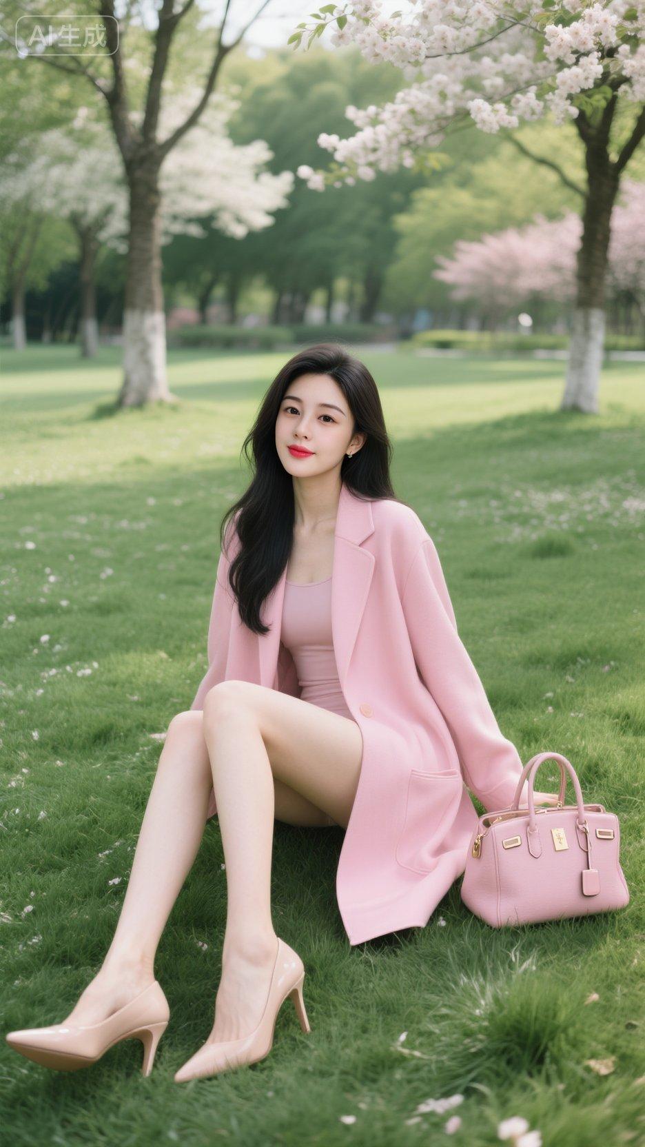 优雅气质,米色毛衣搭配棕色短裙,高跟靴子,坐于现代椅上,完美展现时尚感。